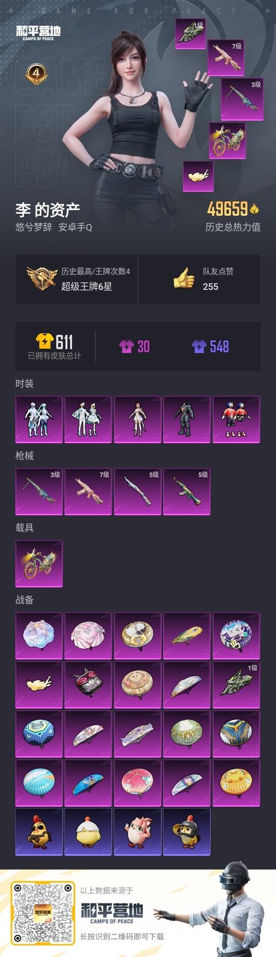 - PX_2107047-?/枪械4/装备112/战备76/王牌印记7/热力值27769/五级SCAR-L-锦绣绵绵/五级M416-电玩时刻/五级Kar98K-巳巳如意/七级MG-36-幻彩电音/粉装-星穹咏叹调/套装-龟仙人/套装-绒宝小鹅/套装-巳巳如意/套装-小鸟芋圆/角色-多纳泰罗/套装-糖糖葫芦/套装-青团波波/套装-棉花软糖/套装-燕燕于飞/套装-鱼渊荷华/套装-镭金极速/角色-风玲/套装