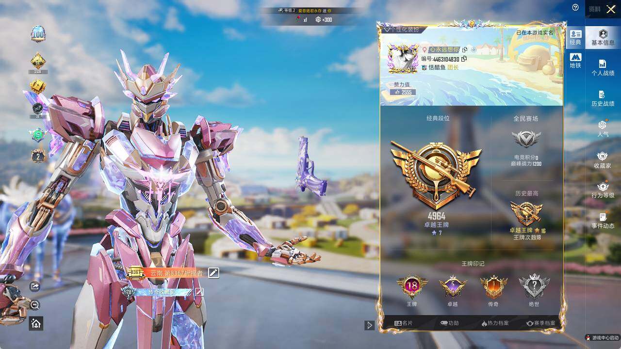 - [11599138]8粉装 4特效枪 3载具 14印记 可二次 可修改实名 连体王者 身法装备:都市猎人 优质装备:海龙奔腾,兰博基尼Estoque(银翼灰),兰博基尼Aventador SVJ(翡翠绿),都市猎人,梦幻火箭(新101)(新火箭少女101粉色套装),蝶舞迷情,宝贝奶油派,SCAR-L青春物语,七级SCAR-L-青春物语,千金淑猫,P90-冷漠罗丽,Kar98K-巳巳如意 时装数:524 枪械数:191 战备数:3 热门装扮:幻情紫藤,天之羽翼,复仇流浪者,暗夜玫瑰,潮萌小黄鸭,鹰眼刺客,都市猎人 载具:空客H135-蔚蓝之翼 稀有枪皮:DP-28-豹影疾电 六级特效枪:六级P90-冷漠罗丽 五级特效枪:五级Kar98K-巳巳如意,五级DP-28-豹影疾电 紫色装扮:田园牧歌,轻风白浪,SS22特训,莱茵河畔,白啸长虹,SS23特训,幻彩翩翩,妙红点点,娇憨猪猪,俏皮奶喵,萌趣咩咩,SS21特训,绚烂繁星,SS31特训套装,冰川特警,北国孤狼,SS30特训套装,云朵鹅,雪绒豹,SS33特训套装,青涩时光,顶瓜瓜,SS20特训,潮流游乐家,暗夜傀儡,冰爽风暴,飞驰魅影,音速流光,极速竞梦,SS19特训,军刀雅典娜,甜心亚梦,虚音幻奏,天籁歌者,瑞龙福将,团圆交子,SS17特训,焰山流火,异彩先驱,SS18特训,智慧隐士,都市魅力,长空猛禽,霓虹极客,霓虹街区,缤纷果语,蓝色运动,虎虎生威吉莉,街头潮人,跃动心情,骑行爱好者,魅力单车,麻辣教官,黄色名流,黄色运动,黎明保卫者,黑色伏地魔,冰河战士,龙魂突击队,蝶变,香桃花海,柠萌假日,海岛探路者,深蓝色名流,滨海假日,夏日音浪,幻世战舞者,探宝勇士,湖蓝色名流,滨海厨神,甜蜜菠萝,疯狂小兔子,白色伏地魔,破蛋小黄鸡,福星高照,空投萌叽,竞技勇士朋克,甜蜜熊情侣,牛气冲天,潮流炫酷,炫蓝之夏,热血青春,牛气满满,特战装甲,雏菊兔兔,萝兰蝴蝶,SS29特训,星途旅人,SS28特训,李逍遥,异域银装,鱼渊荷华,玉兔迎春,燕燕于飞,巳巳如意,海琴烟,青团波波,糖糖葫芦,竞技名士,街头风暴,银尘,SS25特训,粉红小猪,SS27特训,智谋强哥,SS6特训,SS7特训,SS8特训,大橘大利,SS9特训,SS10特训,SS11特训,蓝冰羽,紫幽梦,SS32特训服(SS32特训套装),风舞幻音,萌黄之夏,恋语绒绒,漫步者,金耀舞者,