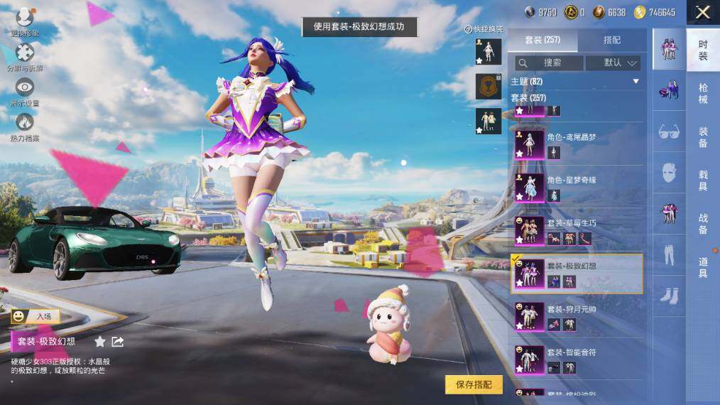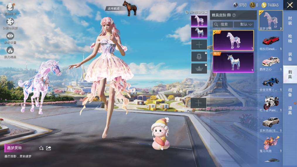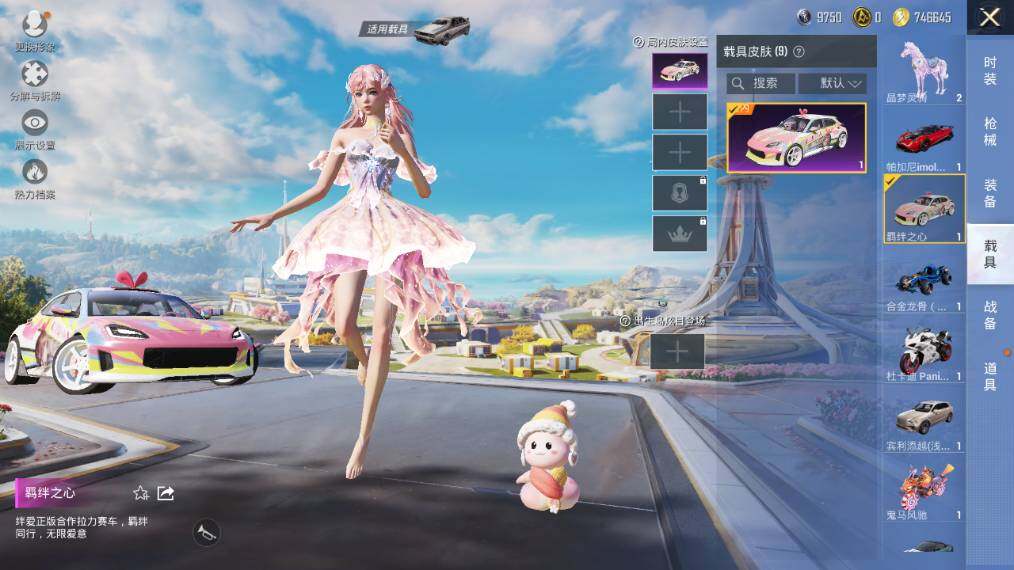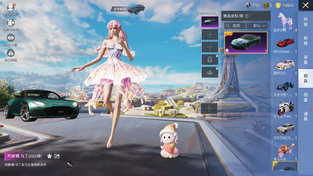【粉色载具】:阿斯顿马丁DBS(绿),宾利添越(浅瞪羚棕),帕加尼imola(光影红),合金龙骨(蓝),羁绊之心,杜卡迪 Panigale V4(星耀白),鬼马风驰,星梦玉骢,晶梦灵驹