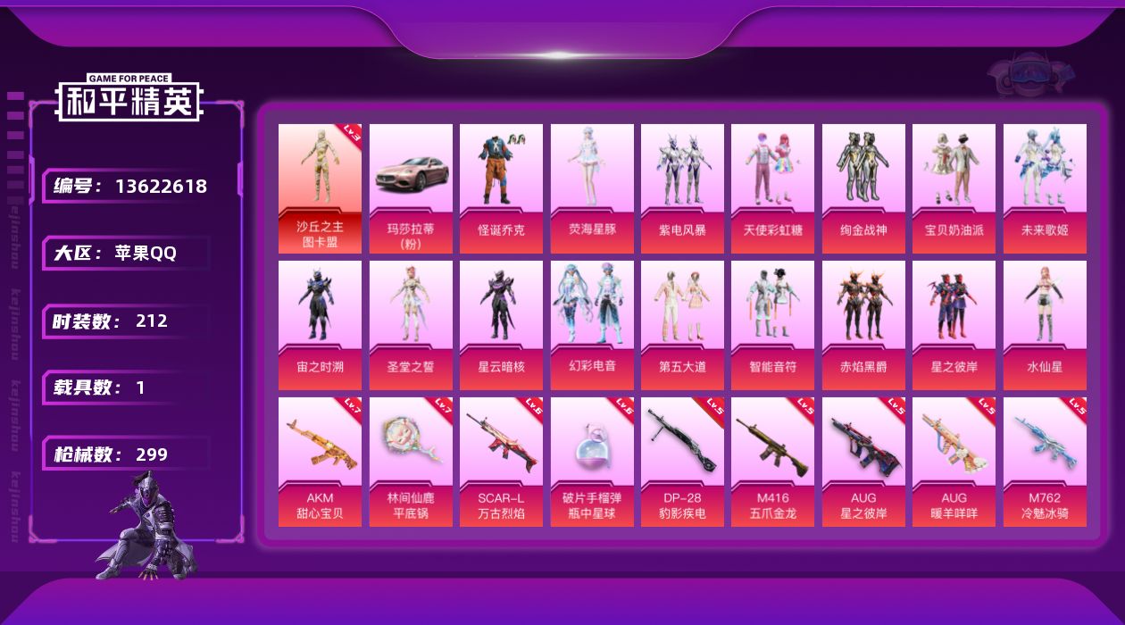 - PX_2036721- 可二次 苹果Q-96775热力值 8王牌印记 历史无敌战神 SS32战神框 194套装 紫螳螂 梦幻火箭 雪国 巧克力三姐妹 小可学妹 小番茄 小丑鱼 都市 迅捷狂鲨 天命 红眼罩 粉熊背包 满级M416-暖熊萌萌 245枪皮 【2载具】 玛莎拉蒂金色 海龙奔腾 【2稀有】 都市猎人 浪漫天命 【26粉装】 紫螳螂 梦幻火箭 蝶舞迷情 小蓝 美琪 雪国幻梦 宝