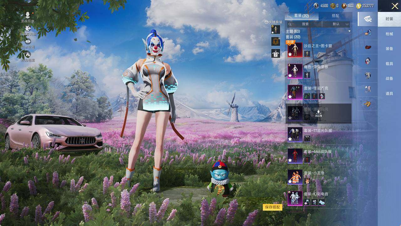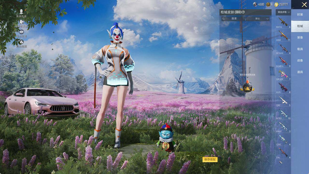 AKM-甜心宝贝,M416-五爪金龙,AUG-星之彼岸,AUG-暖羊咩咩,M762-冷魅冰骑,UMP45-量子极限,P90-沙丘之主,Kar98K-未来歌姬,Kar98K-巳巳如意,平底锅-林间仙鹿