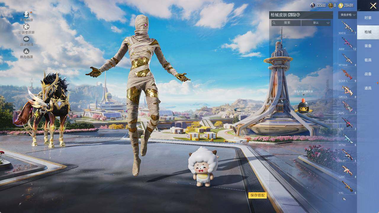 AKM-炫紫旋律,SCAR-L-童趣迷兔,SCAR-L-青春物语,M416-心之恋语,M416-墨龙九天,GROZA-焦糖拿铁,AUG-超新星,UMP45-相思残雪,Vector-灵感创作师,P90-能量风暴,Kar98K-巳巳如意,M24-镜域双华,DP-28-圣堂之誓,MG3-梦幻舞会