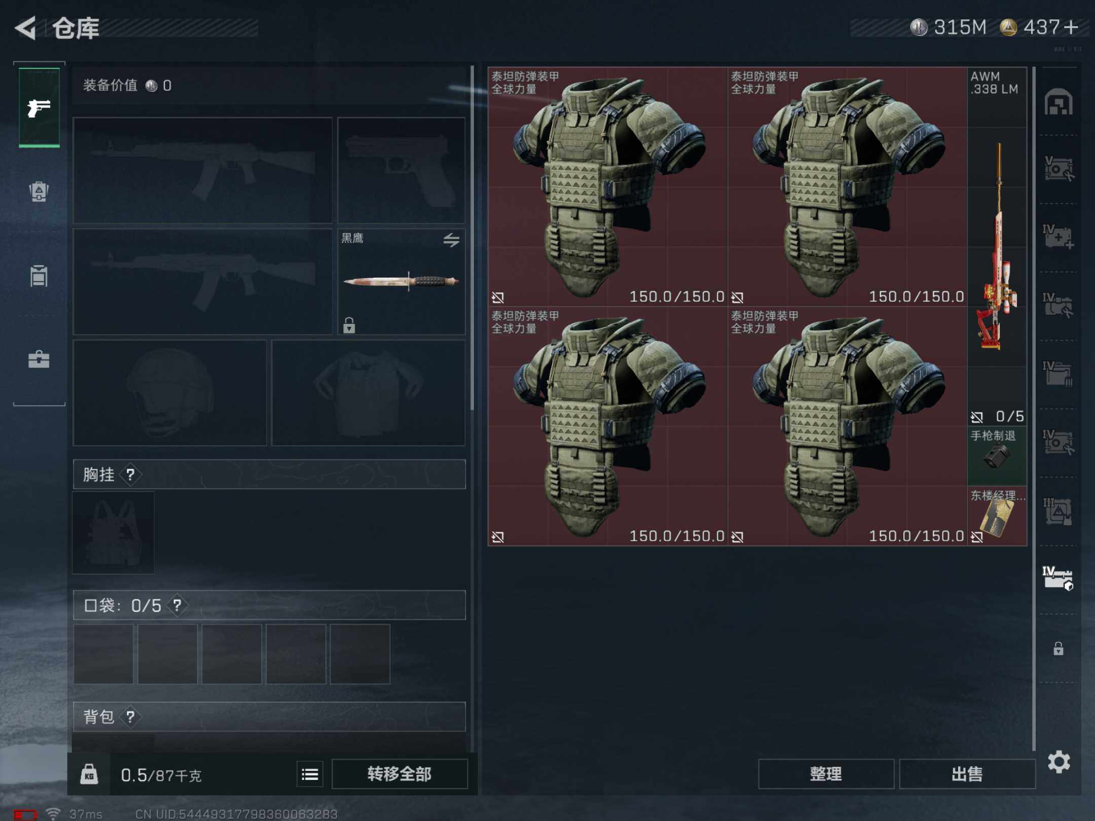[13163682]总资产419m 流动资产389m 哈夫币315081【传说级普通外观】:M4A1突击步枪-阿米娅,ASh-12战斗步枪-鹅鸭杀,腾龙突击步枪-捞点薯条,UZI冲锋枪-特斯拉线圈,勇士冲锋枪-能天使-午夜邮差,QJB201轻机枪-鹅鸭杀,AWM狙击步枪-捞点薯条,93R-捞点薯条,复合弓-黑·天际线