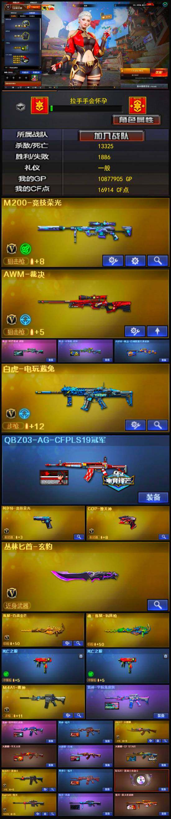 【热门武器】:M200-竞技荣光,死亡之眼*2,白虎-电玩蓝兔,牛牛-AK47,M4A1-黑骑士,羊驼玩偶,裁决-雪莉杨,COP-堕天神,沙鹰-修罗