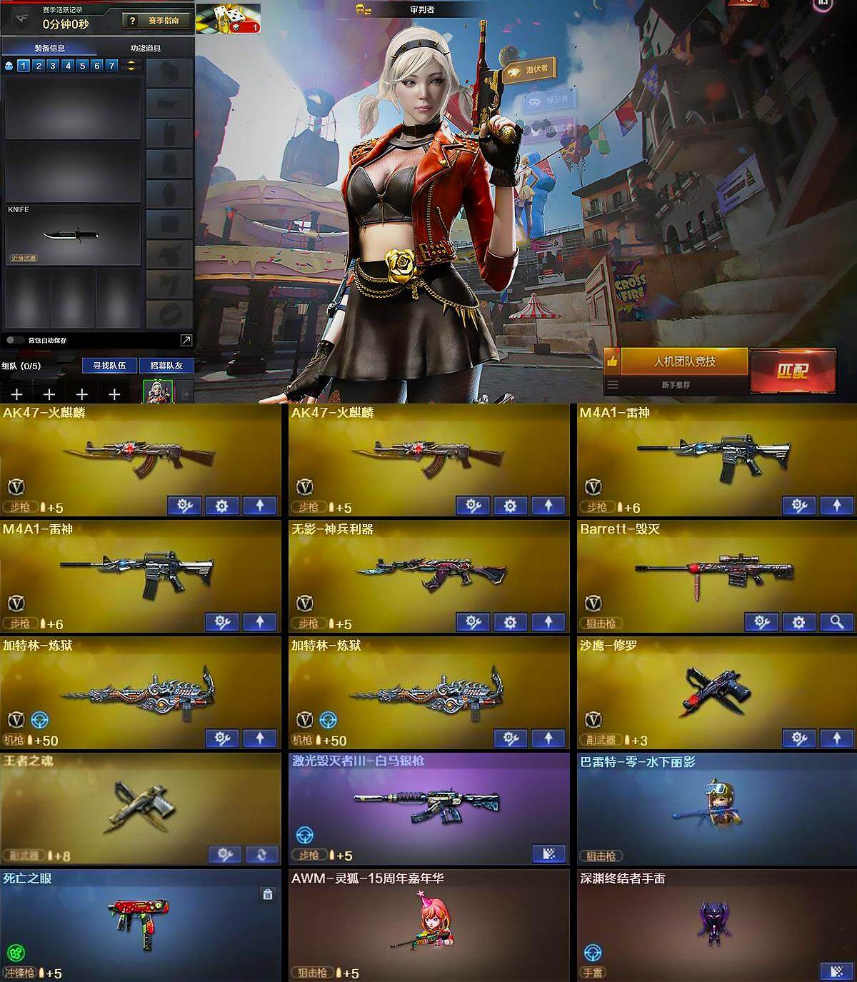 【英雄级武器】:AK47-火麒麟*2,M4A1-雷神*2,无影-神兵利器,Barrett-毁灭,加特林-炼狱*2,沙鹰-修罗