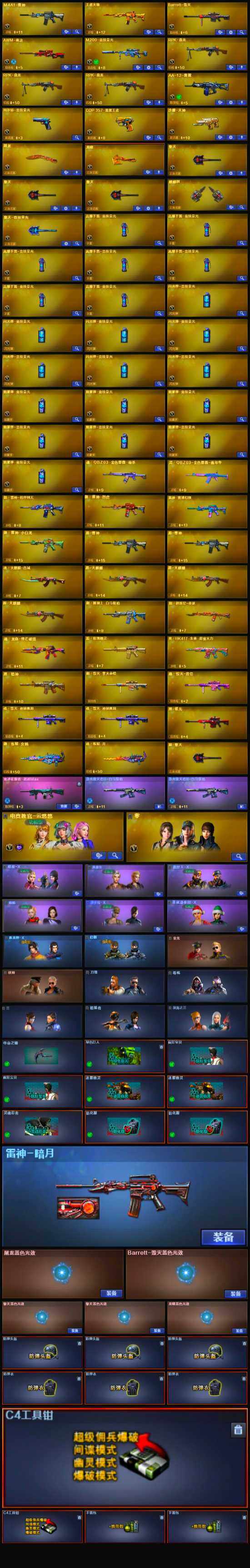 【英雄级武器】:M4A1-雷神,AK-47-猩红传说,王者火魄-觉醒版,Barrett-毁灭,AWM-裁决,M200-竞技荣光,RPK-盘龙*3,AA-12-雷霆,沙鹰-天神,COP 357-雷霆王者-觉醒版,柯尔特-竞技荣光,屠龙,龙啸,擎天*3,麒麟刺,擎天-竞技荣光,麒麟刺-百战金芒,高爆手雷-竞技荣光*7,闪光弹-竞技荣光*7,烟雾弹-竞技荣光*7
