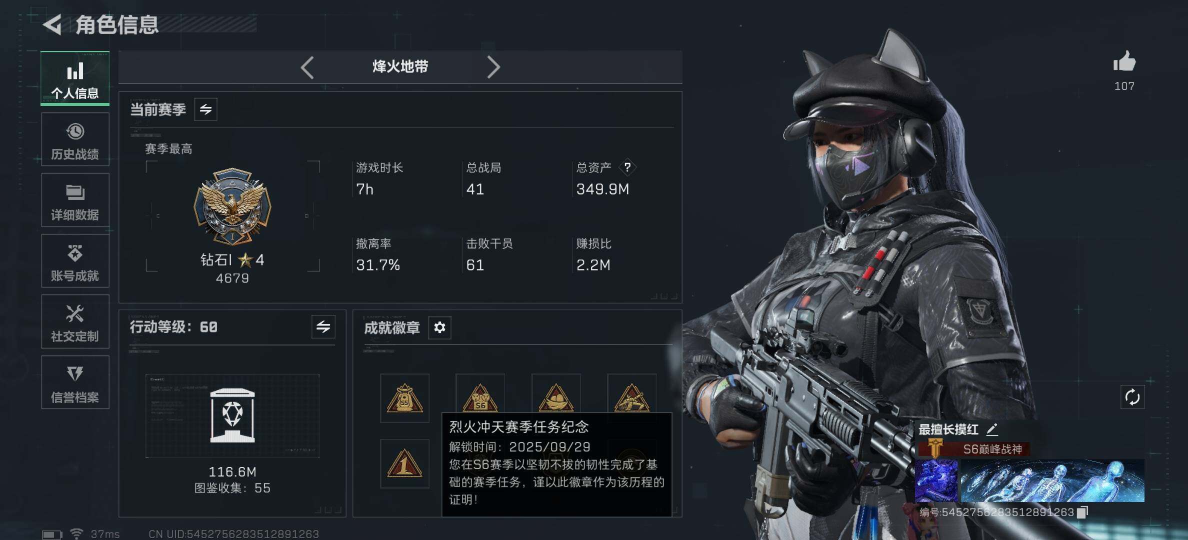 [13855154]【店主推荐捡漏号!可直接换绑】24795k哈伏币-304m流动资产-60烽火等级-钻石-20战场等级-列兵
