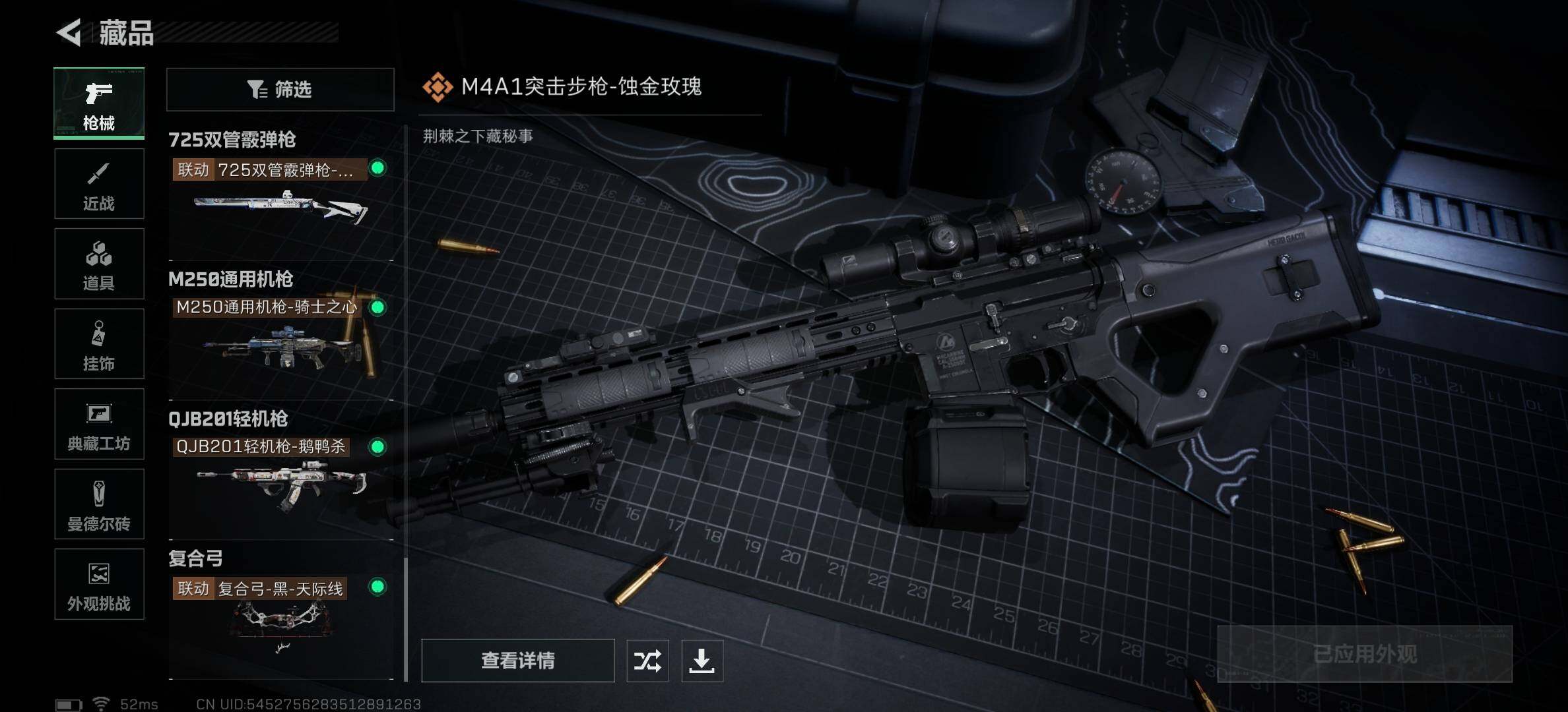 【典藏外观】:K437突击步枪-私人定制,AWM狙击步枪-私人定制,M7战斗步枪-天际线,沙漠之鹰-天际线,QBZ95-1突击步枪-水墨迷彩,SKS射手步枪-蝴蝶,R93狙击步枪-监察