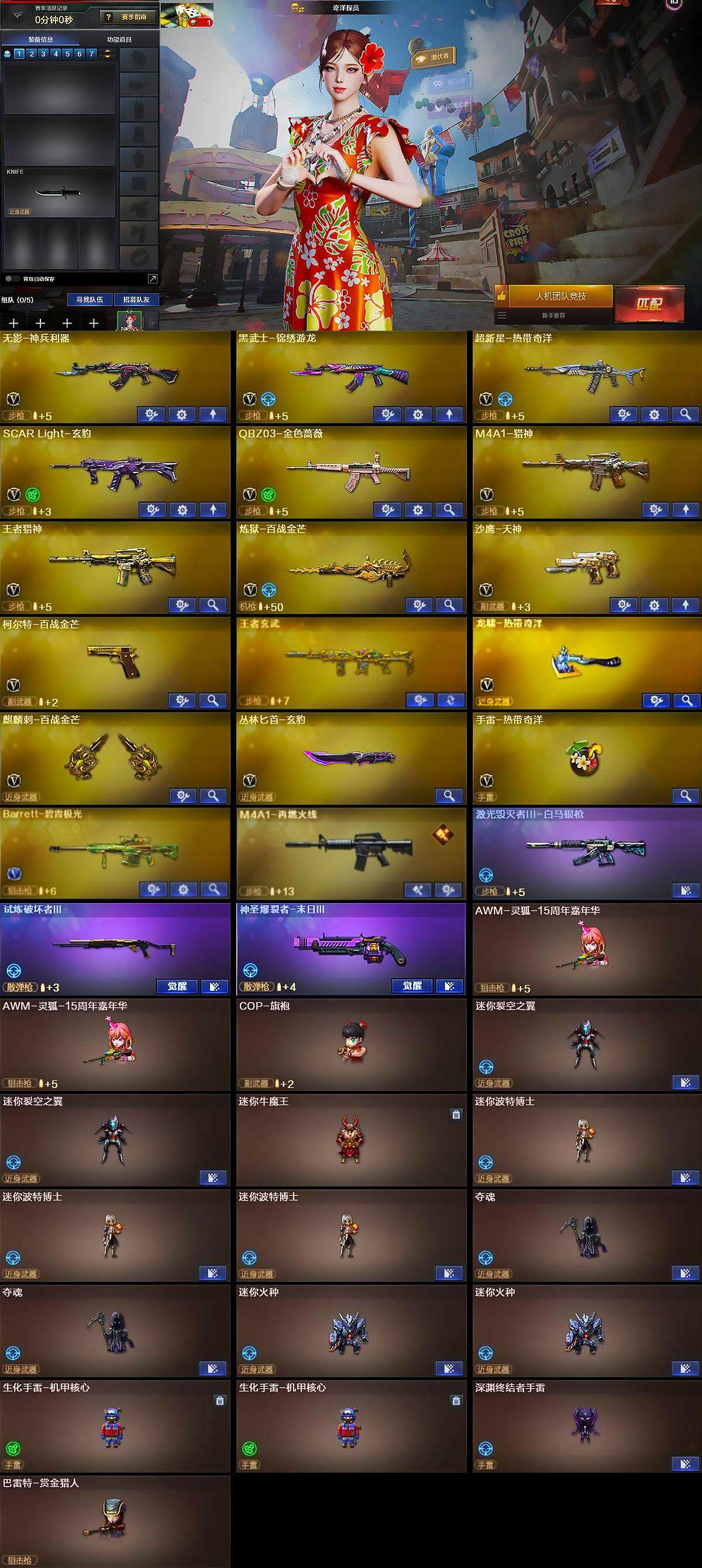 【人偶武器】:AWM-灵狐-15周年嘉年华*2,COP-旗袍,迷你裂空之翼*2,迷你牛魔王,迷你波特博士*3,夺魂*2,迷你火种*2,生化手雷-机甲核心*2,深渊终结者手雷,巴雷特-赏金猎人,灵狐娃娃手雷