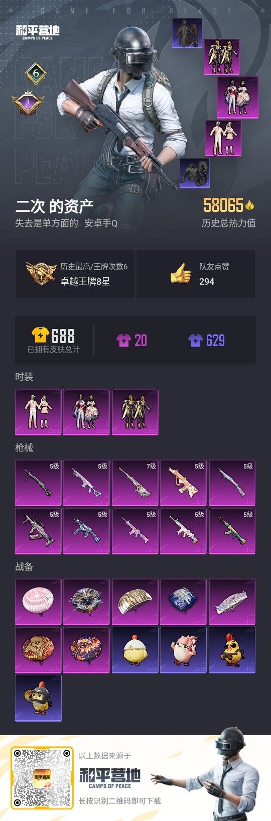 - PX_2090722- 安卓手Q-4王牌印记-6粉装-3特效枪-1载具-57108热力值-139套装-178枪皮-2卓越印记-0传奇印记 【6粉装】,宝贝奶油派,蝶舞迷情,绯穹魔姬,炫光之旅,冰霜白皇,炙焰红王 【3特效枪】AKM-梦之光华-6级 M416-五爪金龙-2级 Kar98K-巳巳如意-5级 【6稀有紫装】,2P战斗服款,深海小丑鱼,龟仙人,怀庆长公主,金羽特工,东方飞龙, 【1稀有载