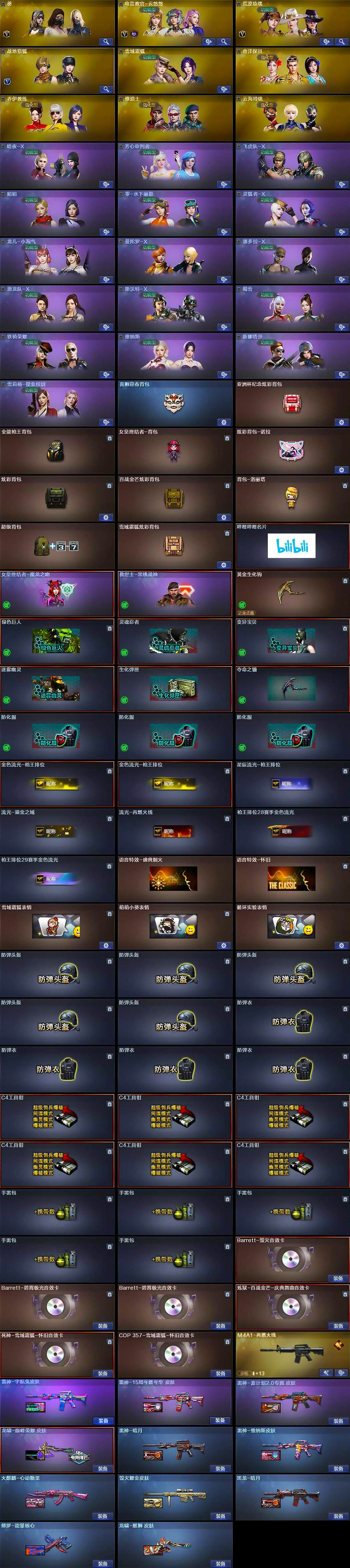【英雄级武器】:AK47-火麒麟*6,M4A1-雷神,M4A1-黑骑士*2,AK47-黑武士,M4A1-武圣,HK417-朱雀,M4A1-夜魔,死神-雪域霜狐,M4A1-玫瑰精灵,QBZ03-金色蔷薇,AWM-天龙*2,Barrett-毁灭*2,Barrett-极光*3,AWM-裁决,M200-竞技荣光,Barrett-金色蔷薇,炼狱-百战金芒,沙鹰-修罗*3,沙鹰-天神,USP-雷暴,COP-堕天神,柯尔特-竞技荣光,屠龙,龙啸,马来剑-夜魔,擎天,麒麟刺*2,擎天-竞技荣光,麒麟刺-百战金芒,高爆手雷-雷暴,高爆手雷-夜魔*3,高爆手雷-竞技荣光*3,闪光弹-雷暴,闪光弹-夜魔*3,闪光弹-竞技荣光*4,烟雾弹-夜魔*3,烟雾弹-竞技荣光*4,M4A1-赤狱骑士,
