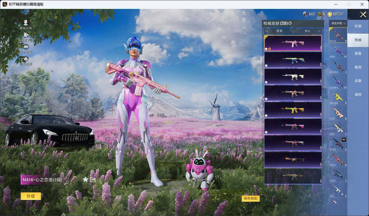 AKM-梦之光华,SCAR-L-机甲封神,M416-心之恋语,GROZA-香水柠檬,AUG-暖羊咩咩,Kar98K-巳巳如意