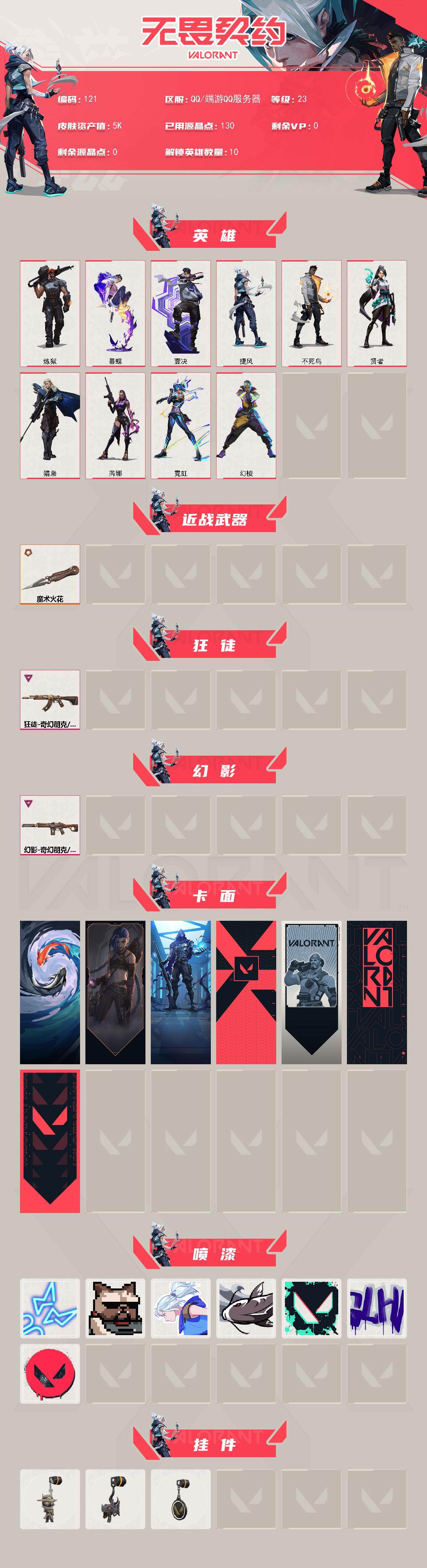 [13815926]【英雄】:幻棱,炼狱,暮蝶,壹决,捷风,不死鸟,贤者,猎枭,芮娜,霓虹 【近战 武器】:近战武器-魔术火花,近战武器-魔术火花 【狂徒】:狂徒-奇幻朋克//3.0 【幻影】:幻影-奇幻朋克//3.0 【卡面】:红鳞松叶 卡面,《双城之战》金克丝 卡面,暗枪 卡面,代号红色 卡面,新兵报到 卡面,V契约 卡面,无畏契约 卡面 【喷漆】:霓光四射 喷漆,关门放狗 喷漆,无畏契约GO!第一卷:捷风 喷漆,松叶 喷漆,胜利属于无畏契约 喷漆,GLHF 喷漆,无畏契约 喷漆 【挂饰】:无畏契约GO!第一卷 零 挂饰,鱼骨头 挂饰,无畏契约 纪念币 挂饰