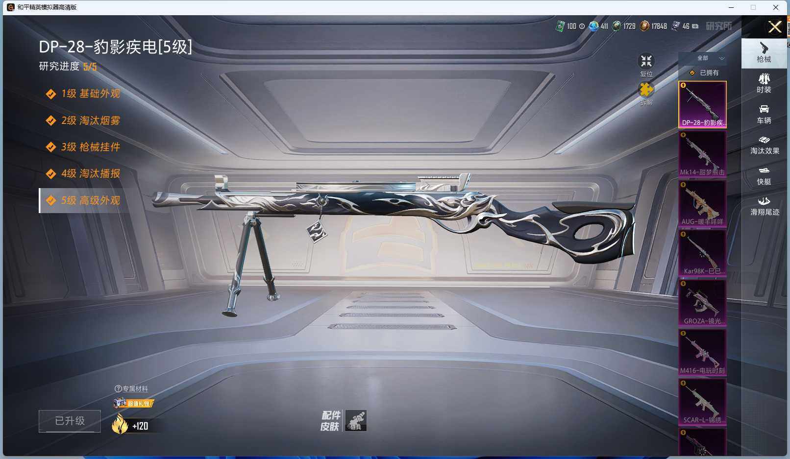 M416-电玩时刻,GROZA-镜光银凌,AUG-星之彼岸,AUG-暖羊咩咩,Kar98K-巳巳如意
