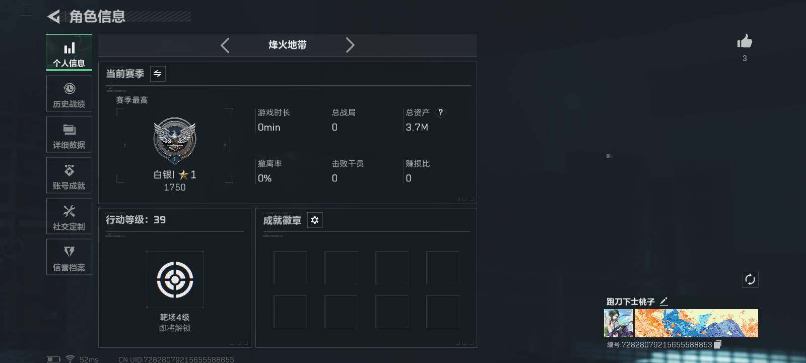 [13822786]【店主推荐捡漏号!可直接换绑】346k哈伏币-1m流动资产-39烽火等级-白银-6战场等级-列兵