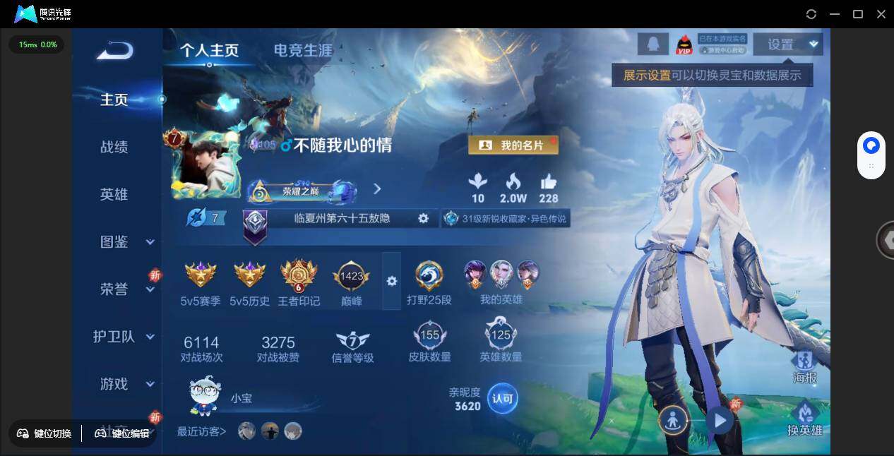 - [11603845]V6 5传说 124英雄 155皮肤 可修改实名 优质装备:黄金射手座,超时空战士-狄仁杰 传说皮:乘龙·铭钟鼎(赵云年限) 珍宝阁皮:蔷薇恋人 限定皮:愿照·九州拓(澜年限),鸣野蒿,五谷丰年,李小龙,山海·玄木吟(马可年限) 史诗皮:鸭鸭历险记-刘禅,器灵·浮梦炉,化蝶舞,星界战将,龙之律动,蒙犽顽岩魄,百相守梦-百里守约,百相守梦-黄忠,紫霞仙子,电玩小子(小书包),电玩·爆裂旋风,江河有灵,百解令(蒙犽),冰冠公主,末日机甲-吕布,乱世虎臣,节奏热浪,水果甜心,绅士熊喵,幽灵船长,鬼剑武藏,暗渊魔法,乘风破浪,逐浪之夏,曙光守护者,箭羽风息,金属风暴,鹰眼统帅,魅力维加斯