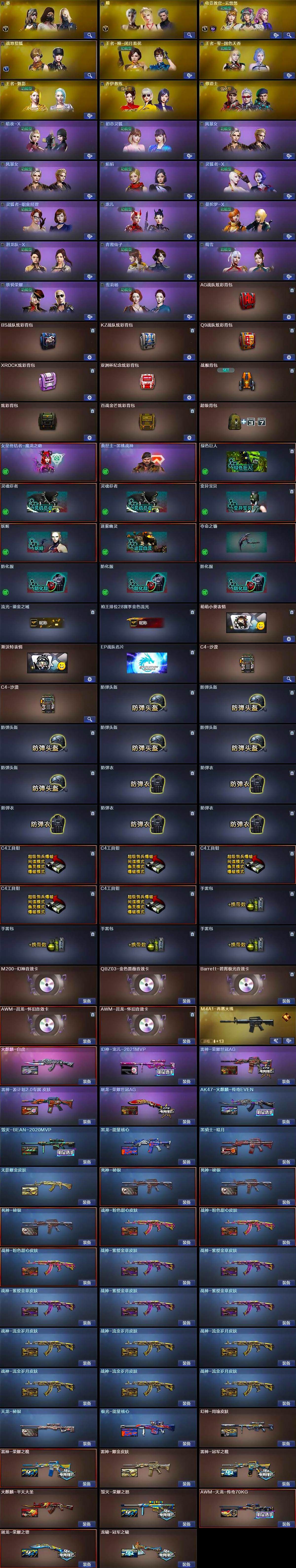 【皮肤】:幻神-周瑜皮肤,幻神-宠儿-2021MVP,雷神-荣耀之魄,雷神-耀金皮肤,雷神-冠军之魄,雷神-荣耀世冠AG,雷神-源计划2.0专属 皮肤,M4A1-再燃火线,AK47-火麒麟-传奇EVEN,火麒麟-平天大圣,火麒麟-白虎,毁灭-荣耀之怒,毁灭-BEAN-2020MVP,黑龙-能量核心,黑骑士-暗月,无影耀金皮肤,死神-秘银*3,战神-粉色甜心皮肤*3,战神-紫绶金章皮肤*5,战神-流金岁月皮肤*6,AK47-B-常胜将军-曹操*2,AK47-B-常胜将军-刘备*2,天龙-秘银,AWM-天龙-传奇70KG,极光-能量核心,屠龙-荣耀之锋,屠龙-荣耀世冠AG,龙啸-冠军之啸,轻型军用手斧-再燃火线