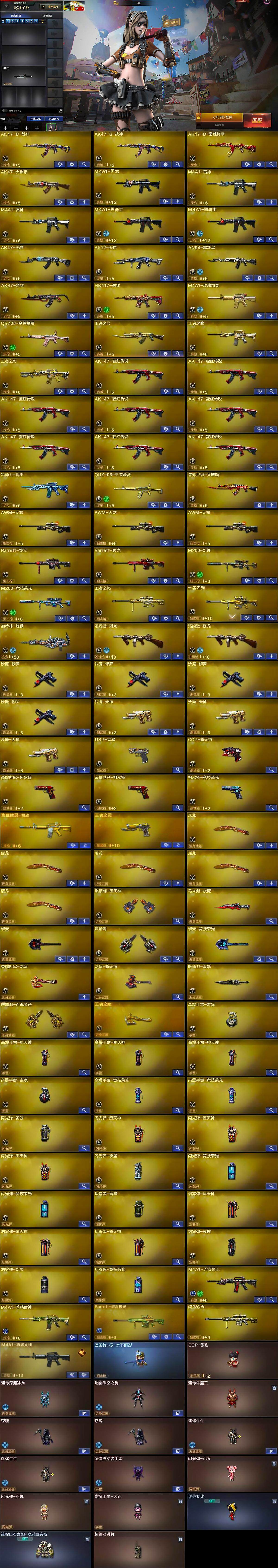 【英雄级武器】:AK47-火麒麟,M4A1-黑龙,M4A1-雷神*2,M4A1-黑骑士*2,AK47-无影,AK12-天启,AN94-超新星,AK47-黑鲨,HK417-朱雀,M4A1-玫瑰精灵,QBZ03-金色蔷薇,王者之心-觉醒版,王者之魄-觉醒版,王者之幻-觉醒版,AK-47-猩红传说*8,AK47-B-战神*2,黑骑士-海王,AK47-B-常胜将军,QBZ-03-王者蔷薇