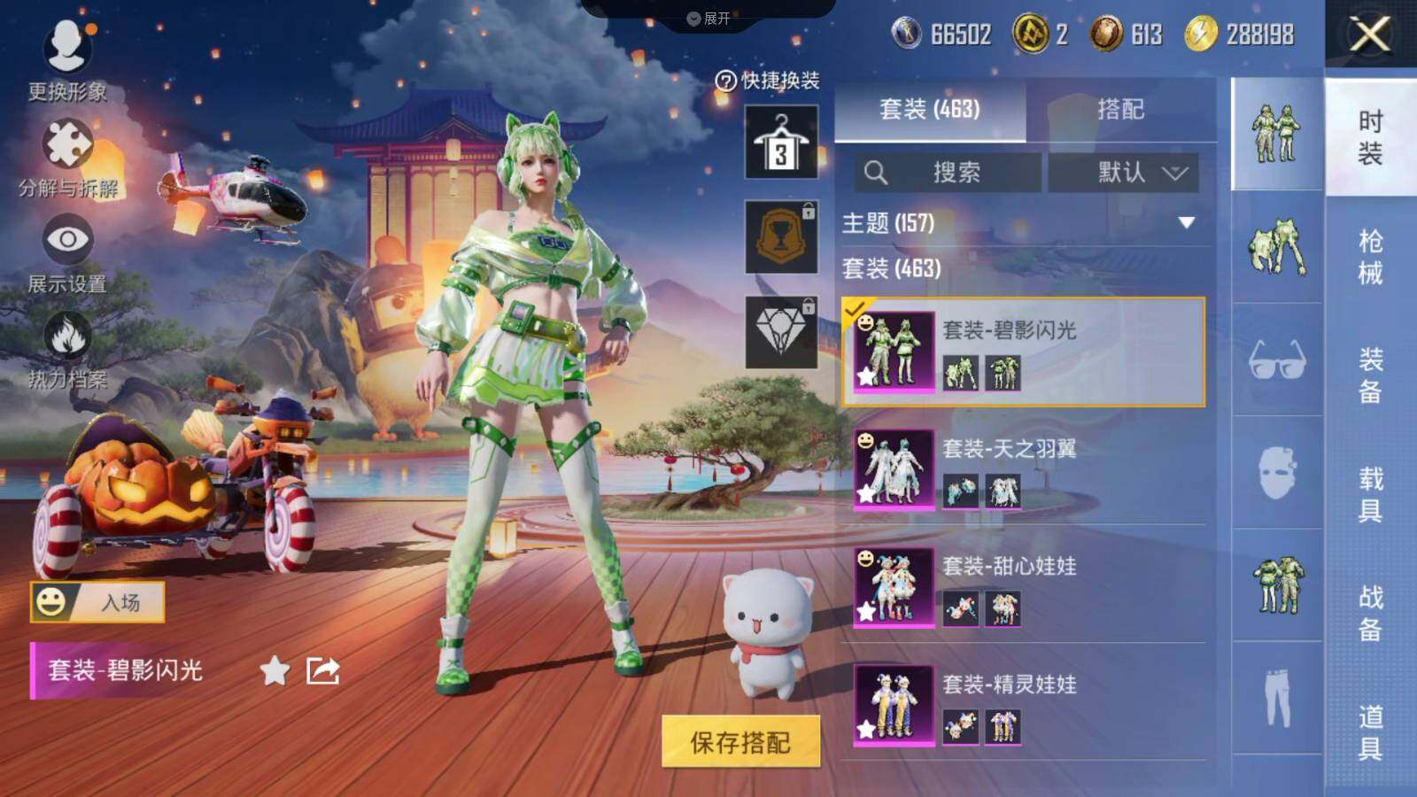 套装-浪漫天命,忍者信条套装,套装-龟仙人,套装-暗影哥特,套装-粉红小猪,角色-Mark.06,套装-狂沙舞者,套装-破蛋小黄鸡,套装-漫步者,套装-水银刺客,套装-幽冥伯爵,套装-弄潮海豚,套装-恶魔人蛛,套装-雪山精英,套装-黑色刀锋,不夜海上花套装,白月香洋装套装,风华少年志套装,套装-机械英豪,套装-安第斯皇冠,套装-暗夜契约,套装-纯白誓言,套装-白虎圣者,粉甜马卡龙套装,海洋之心套装,套装-影双刃,套装-静谧青瓷,套装-娴静芝兰,套装-韶华初心,抹茶蜜豆套装,薄荷蓝莓套装,套装-冰爽海盐,套装-怪笑疯兔,套装-诡面顽熊,套装-醒狮腾龙,套装-瑞龙福将,套装-团圆交子,套装-豚鼠丹丹