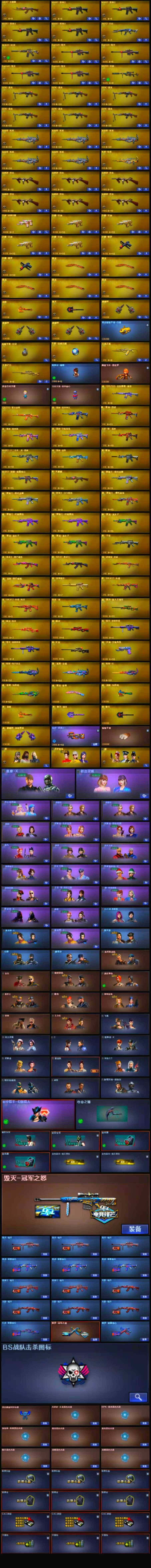 【英雄级武器】:AK47-火麒麟,M4A1-黑骑士*4,AK12-天启,M4A1-幻灵,Barrett-毁灭*4,M200-幻神,RPK-盘龙*6,加特林-炼狱*5,炼狱-悦蓝-觉醒版,汤姆逊-烈龙*6,沙鹰-修罗*2,沙鹰-天神*4,天神-动感闪耀,屠龙*5,龙啸,擎天,麒麟刺*3,高爆手雷-幻灵,手雷-动感闪耀