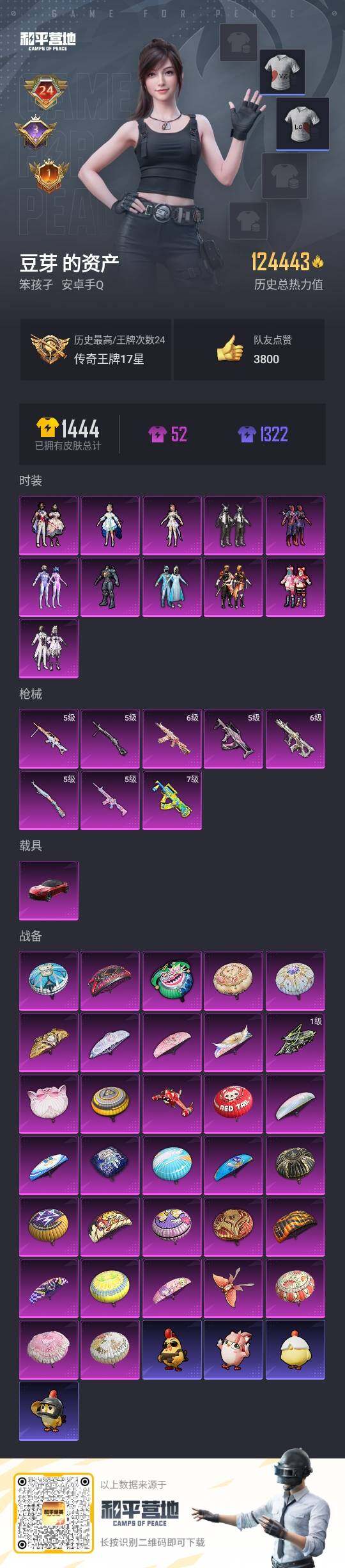 - [11440910]【商品标题】:安卓 手Q-23粉装-7特效枪-0载具-53078热力值-4印记-103套装-141枪皮 【特效枪等级】:AKM-星际浪客(五级),SCAR-L-纯梦嫁纱(四级),Kar98K-巳巳如意(四级),M417-第五大道(五级),M200-玉鳞金羽(四级),DP-28-暗夜鎏金(七级),MG3-洛神天依(四级) 【优质套装】:粉装-独舞天鹅,粉装-宝贝奶油派,粉装-梦幻火箭,粉装-缤纷油彩,粉装-童趣迷兔,角色-洛天依,粉装-圣光天使,角色-复仇流浪者,粉装-傲雪凌霜,粉装-霁雪冰心,粉装-霞光圣骑,粉装-寒光使者,角色-歌者泠鸢,粉装-暗夜鎏金,粉装-第五大道,粉装-挚爱序曲,粉装-纯珍童话,角色-白勺歌姬,角色-呆萌星弥,角色-小可学妹,粉装-玉鳞金羽,角色-电波星,粉装-幻彩电音 【稀有套装】:套装-龟仙人,套装-巳巳如意,套装-雏菊兔兔,套装-萝兰蝴蝶,套装-小熊娃娃,套装-火种守卫者,套装-糖糖葫芦,套装-青团波波,套装-燕燕于飞,套装-鱼渊荷华,套装-旋风灵鼠,套装-极速光影,套装-雪绒豹 【优质武器皮肤】:AKM-星际浪客,SCAR-L-纯梦嫁纱,Kar98K-巳巳如意,M417-第五大道,M200-玉鳞金羽,DP-28-暗夜鎏金,MG3-洛神天依 【稀有武器皮肤】:AKM-环太平洋,AKM-缤纷海域,AKM-霓虹街区,AKM-龙的传人,M16A4-幻世战舞者,M16A4-甜心亚梦,SCAR-L-炫彩节奏,SCAR-L-玉兔迎春,SCAR-L-红色方程式,M416-糯团青竹,M416-红色方程式,M416-绿野极光,GROZA-懵萌河马,GROZA-田园牧歌,AUG-天降萌叽,QBZ-妙趣可丽,QBZ-彩虹符号,QBZ-未来歌姬,QBZ-洛神天依,M762-暗夜鎏金,M762-第五大道,M762-绒雪飘舞,M762-云朵鹅,Mk47-妙红点点,Mk47-洛神天依,Mk47-粉色回忆,G36C-懵萌河马,AC-VAL-快闪甜心,AC-VAL-甜心亚梦,蜜獾-娇憨猪猪,UZI-啾咪啾咪,UZI-娇憨猪猪,UMP45-涂山之恋,UMP45-炫光之旅,UMP45-生命誓言,UMP45-蓝色火焰,Vector-生命誓言,Vector-田园牧歌,汤姆逊-暗夜鎏金,汤姆逊-环太平洋,野牛-天星战神,MP5K-飒粉甜心,P90-快闪甜心,Kar98K-彩虹符