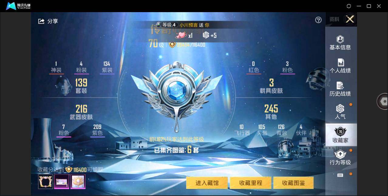 - [11579362]总资产:78.3 7传说枪械 可二次 可修改实名 烽火地带段位:铂金 全面战场段位:无段位 哈夫币:545.946 传说武器皮肤:UZI冲锋枪-特斯拉线圈,SR-3M紧凑突击步枪-特斯拉线圈,AK-12突击步枪-特斯拉线圈,复合弓-黑-天际线,CAR-15突击步枪-阿米娅,725双管霰弹枪-送葬人-无题密令,勇士冲锋枪-能天使-午夜邮差 史诗武器皮肤:PKM通用机枪-荒野求生,MP5冲锋枪-深海恐惧,SR-3M紧凑突击步枪-荒野求生,M16A4突击步枪-竞赛选手,SVD狙击步枪-荒野求生,SV-98狙击步枪-林中猎手,PSG-1射手步枪-无垢,AS Val突击步枪-典狱官,M250通用机枪-囚徒,SV-98狙击步枪-囚徒,MP7冲锋枪-无垢