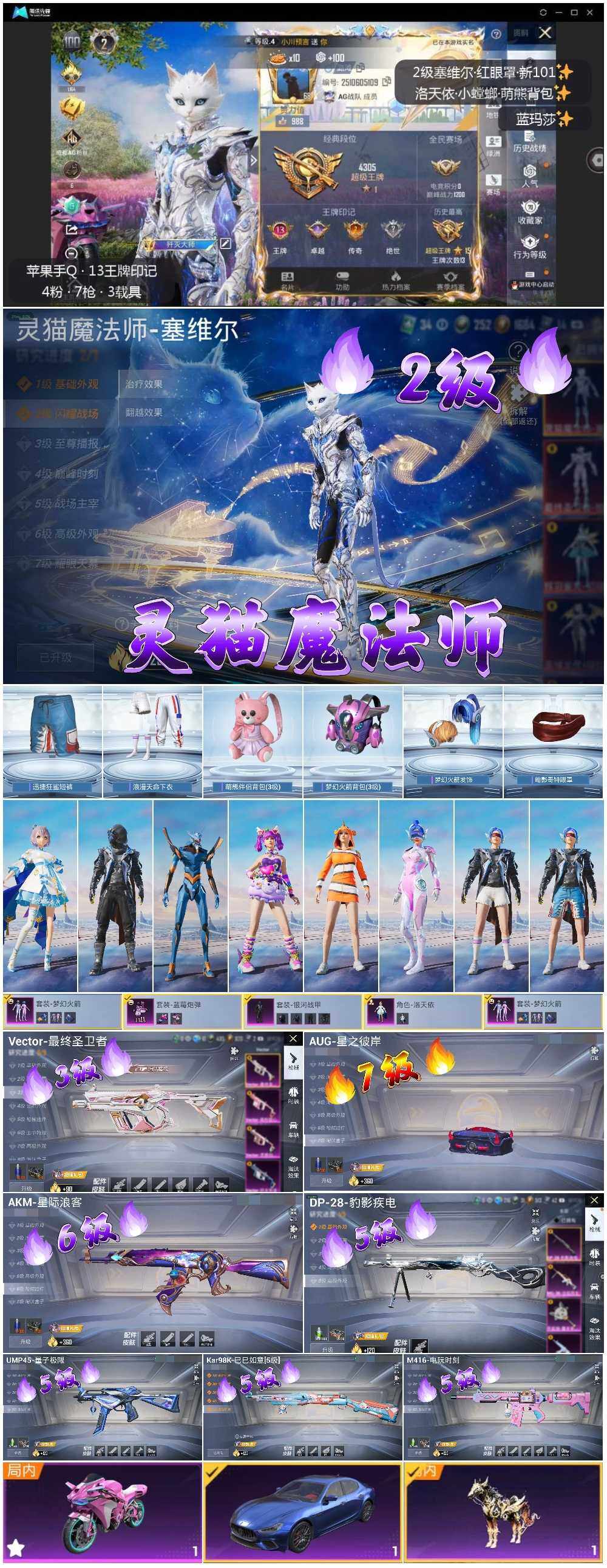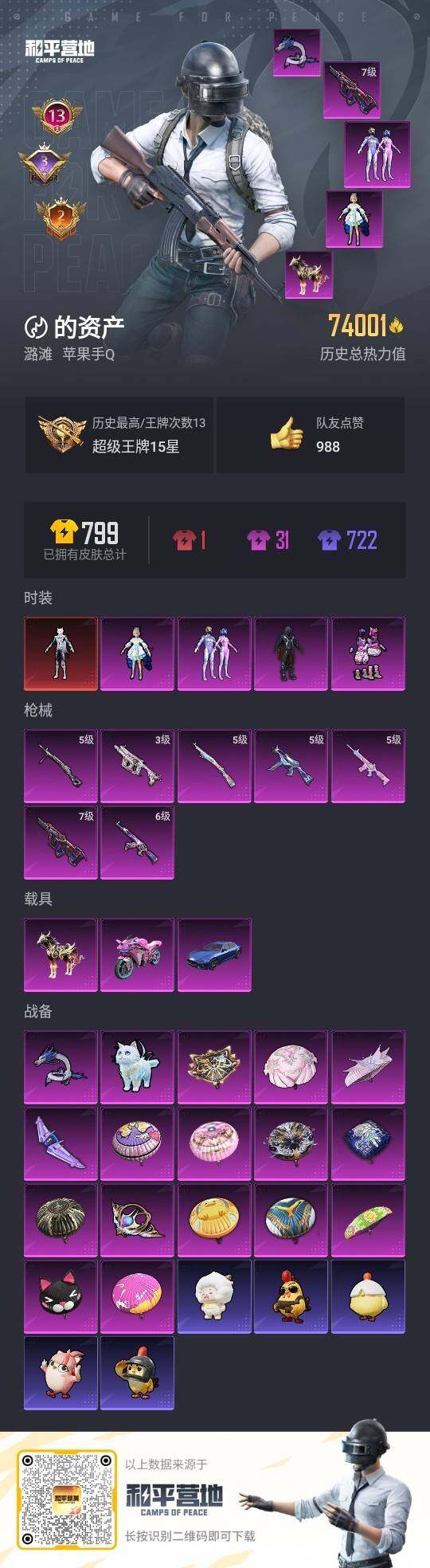 - [12944796]身法素材号【特价急出/详情看图】:苹果 手Q-2神装-2粉装-5特效枪-3载具-3粉色飞行器-51690热力值-3王牌印记-104套装-138枪皮 【红色神装等级】:最终圣卫者-帕修斯(二级),辉羽雀灵-初翊(一级) 【红色角色神装】:最终圣卫者-帕修斯,辉羽雀灵-初翊 【热门品类】:套装-龟仙人 【粉色载具】:玛莎拉蒂Ghibli(粉),迈凯伦塞纳(冷萃蓝),辉羽雀灵自行车 【粉色套装】:粉装-金曜白虎,粉装-星穹咏叹调 【粉色枪皮等级】:M416-心之恋语(七级),Vector-最终圣卫者(三级),Kar98K-巳巳如意(五级),DP-28-豹影疾电(五级),MG3-辉羽雀灵(三级) 【粉色枪皮】:M416-心之恋语,Vector-最终圣卫者,Kar98K-巳巳如意,DP-28-豹影疾电,MG3-辉羽雀灵 【粉色飞行器】:雀灵庇佑飞行器,幻星舰长飞行器,终晖之翼飞行器 【粉色降落伞】:银河战甲降落伞,春暖花开降落伞,香水柠檬降落伞,洛神天依降落伞,精灵梦叶罗丽降落伞,创世·救赎降落伞,临安公主降落伞,星穹咏叹调降落伞,辉羽雀灵降落伞,湮灭星辰降落伞,幻星舰长降落伞,最终圣卫者降落伞 【稀有套装】:套装-龟仙人,套装-雏菊兔兔,套装-萝兰蝴蝶,套装-小熊娃娃,角色-都市丽猫,套装-紫幽梦,套装-蓝冰羽,套装-星渊小夜曲,套装-虚空漩涡,套装-极速光影,角色-乐音 【稀有枪皮】:AKM-冰凉西瓜,AKM-春暖花开,AKM-破晓战魂,AKM-萌趣颜团子,AKM-虎虎生威,M16A4-红色方程式,M16A4-最终圣卫者,SCAR-L-炫彩节奏,SCAR-L-红色方程式,M416-仓鼠灰灰,M416-糯团青竹,M416-蓝色火焰,GROZA-恐龙拽拽,GROZA-春暖花开,AUG-耀粉歌者,M762-快乐主宰,M762-拳皇97,G36C-星穹咏叹调,蜜獾-天降萌叽,Famas-湮灭星辰,UZI-幻影战神,UZI-炫彩节奏,UZI-月影灵韵,UMP45-春暖花开,Vector-焰鹰斗篷,Vector-生命誓言,汤姆逊-天降萌叽,汤姆逊-耀粉歌者,汤姆逊-幻星舰长,野牛-最终圣卫者,AKS-74U-辉羽雀灵,P90-巳巳如意,Kar98K-彩虹符号,Kar98K-炫彩节奏,Kar98K-狮舞迎春,Kar98K-王子的夏天,Kar98k-最终圣卫者,M24-冰封烈焰,M2
