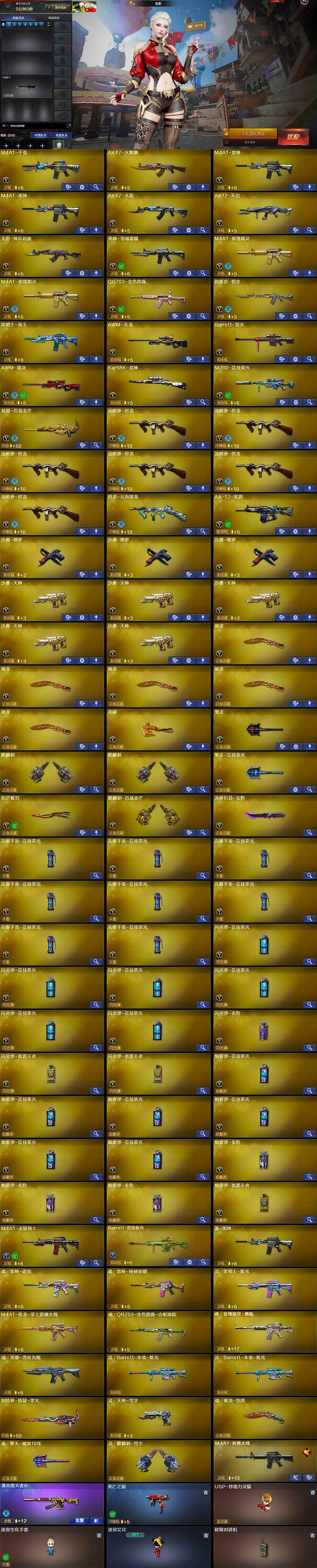 【热门武器】:QBZ03-金色蔷薇,M200-竞技荣光,死亡之眼,Kar98K-星神,汤姆逊-烈龙*6,USP-钞能力灵狐,沙鹰-修罗*3,炽芒蝶刃,炽芒蝶刃-破浪逐光 皮肤
