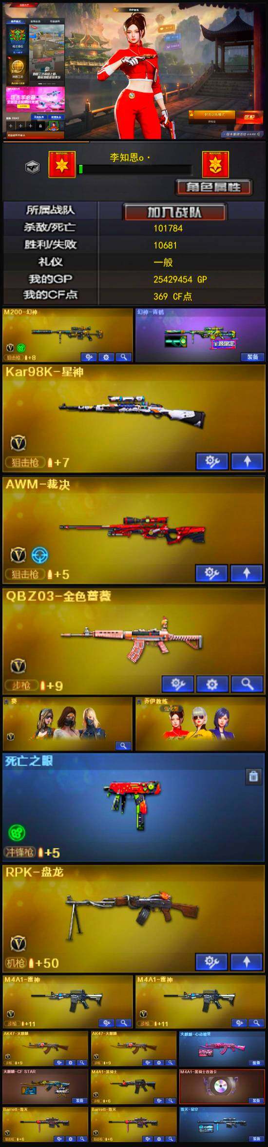 【热门武器】:QBZ03-金色蔷薇,M200-幻神,死亡之眼,Kar98K-星神,M4A1-黑骑士,RPK-盘龙,羊驼玩偶
