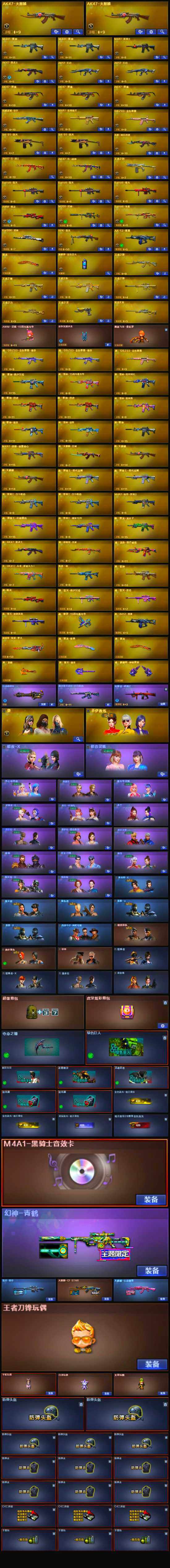 【英雄级武器】:AK47-火麒麟*2,M4A1-雷神*2,M4A1-黑骑士,AK47-黑武士,AK12-天启*2,AK47-黑鲨*3,无影-神兵利器,M4A1-玫瑰精灵,QBZ03-金色蔷薇,AK-47-猩红传说,AK47-B-战神,王者之烈-觉醒版,Barrett-毁灭*2,Barrett-极光,AWM-裁决,M200-幻神,Barrett-朱雀,Kar98K-星神,RPK-盘龙,AA-12-雷霆,屠龙,烟雾弹-竞技荣光