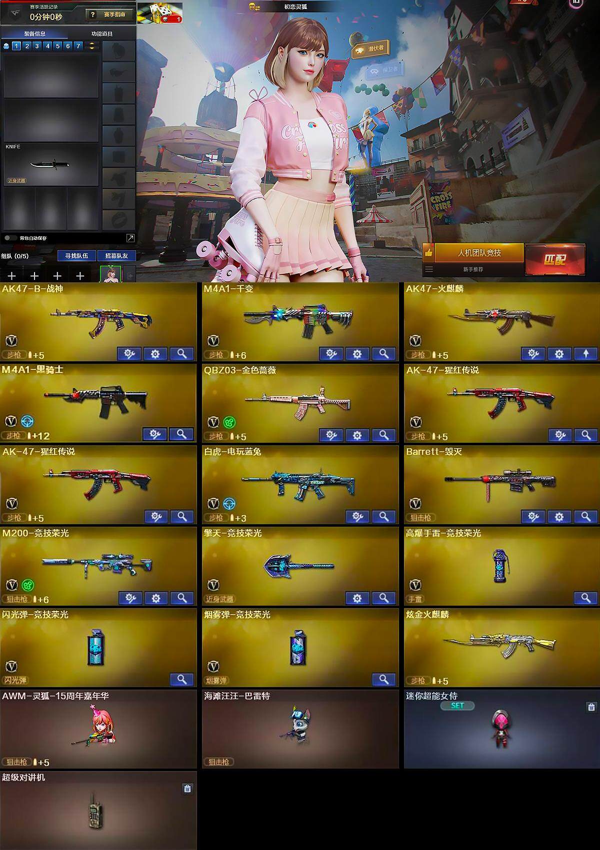 【英雄级武器】:M4A1-千变,AK47-火麒麟,M4A1-黑骑士,QBZ03-金色蔷薇,AK-47-猩红传说*2,AK47-B-战神,白虎-电玩蓝兔,Barrett-毁灭,M200-竞技荣光,擎天-竞技荣光,高爆手雷-竞技荣光,闪光弹-竞技荣光,烟雾弹-竞技荣光