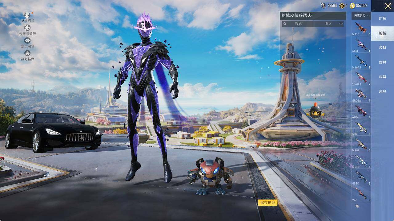 AKM-星际浪客,SCAR-L-青春物语,M416-风花雪月,GROZA-镜光银凌,AUG-星之彼岸,M762-鬼刀,UMP45-恐龙拽拽,UMP45-宇宙意志,Kar98K-巳巳如意,SLR-暗夜玫瑰,MG3-炙焰牛王