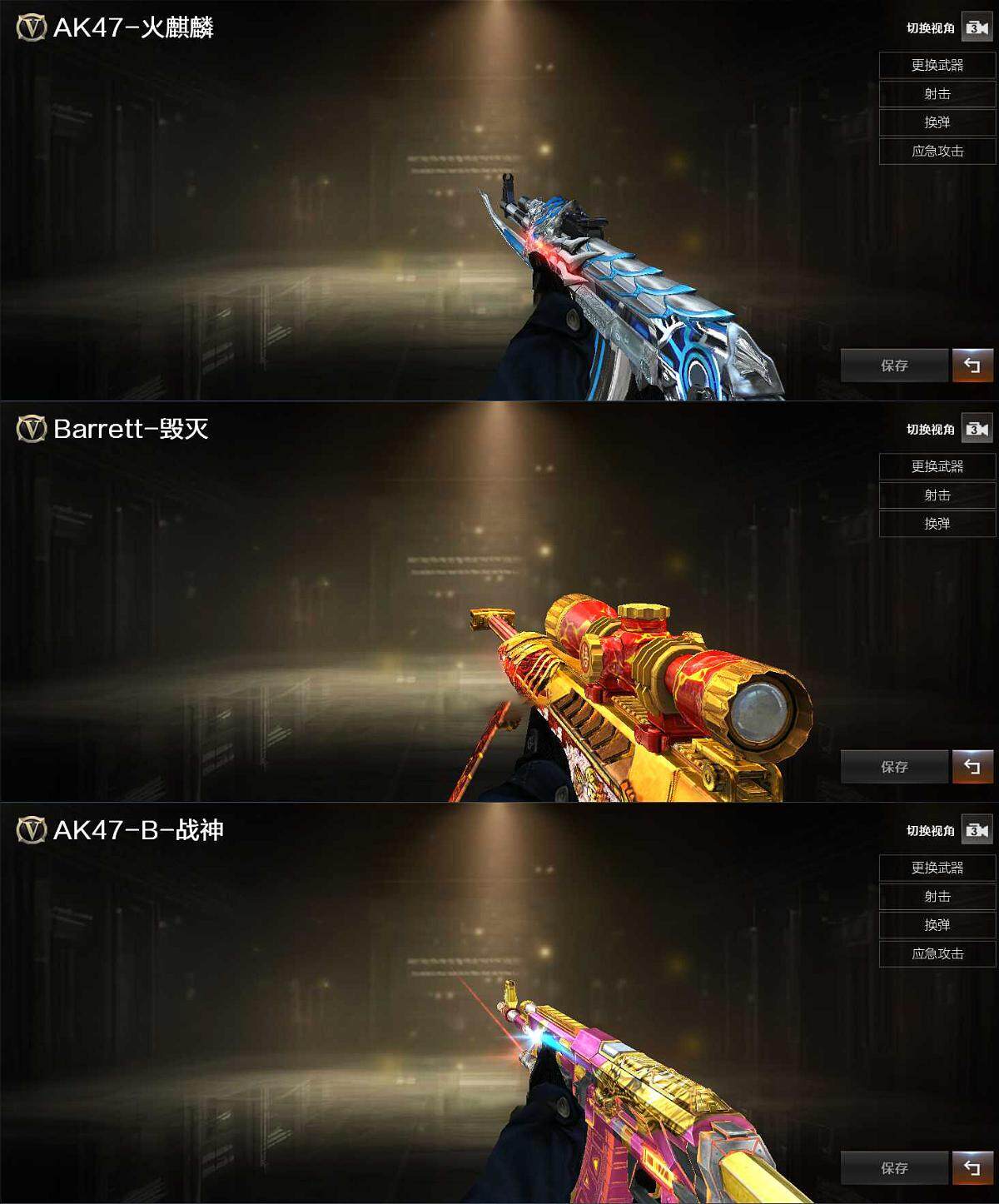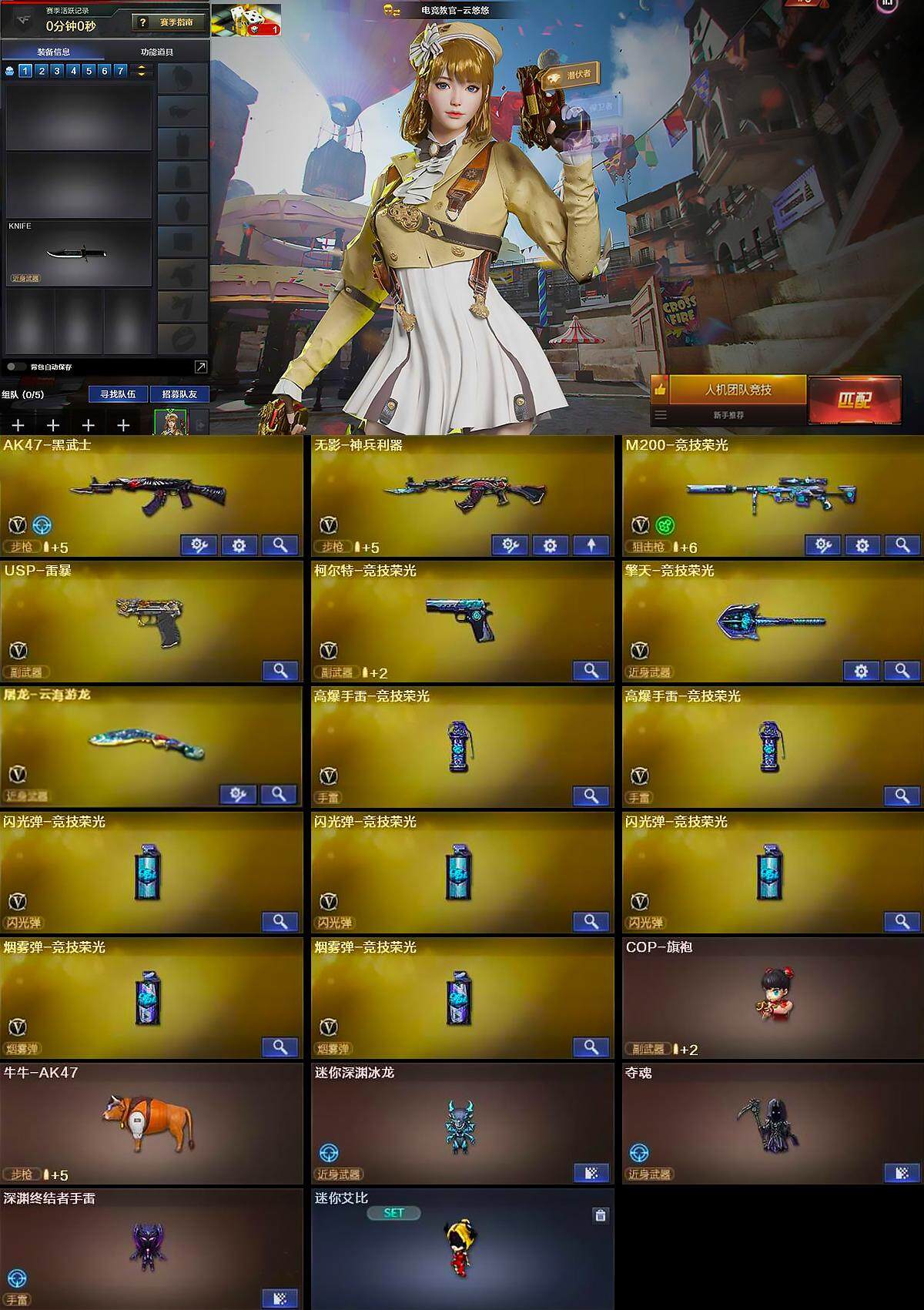 【英雄级武器】:AK47-黑武士,无影-神兵利器,M200-竞技荣光,USP-雷暴,柯尔特-竞技荣光,擎天-竞技荣光,屠龙-云海游龙,高爆手雷-竞技荣光*2,闪光弹-竞技荣光*3,烟雾弹-竞技荣光*2