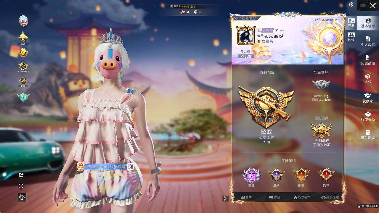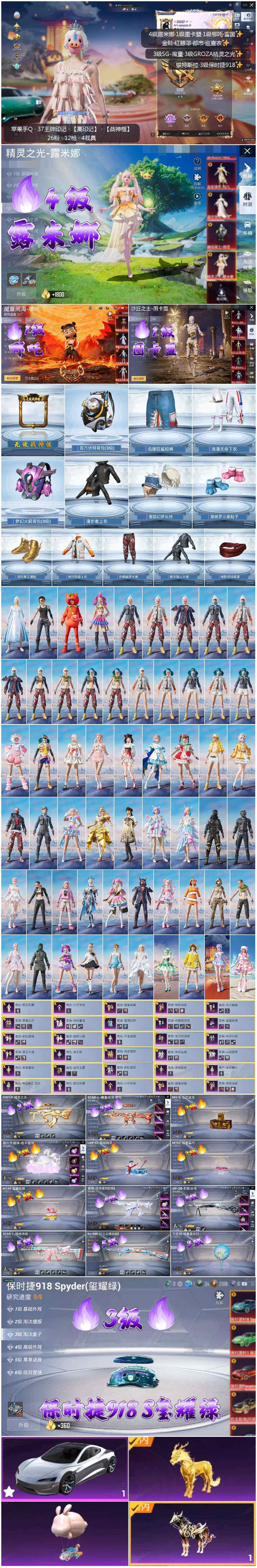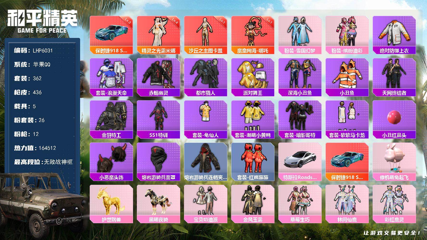- [11712808]6粉装 10特效枪 10印记 可二次 可修改实名 身法装备:暗影哥特(红眼罩),TT追光队服,Mark.06(新蓝螳螂) 优质装备:M416风花雪月,AKM绿萝繁花,SCAR-L-锦绣绵绵,英伦信使,GROZA-镜光银凌,萨利娅,M762-鬼刀,AUG-暖羊咩咩,智耀战神,冷漠罗丽,P90-冷漠罗丽,荧海星豚,Kar98K-巳巳如意 热门装扮:金丰海韵,鹰眼刺客,深海小丑鱼 稀有枪皮:MG-36-沧焰双生,DP-28-豹影疾电 五级特效枪:五级GROZA-镜光银凌,五级Kar98K-巳巳如意,五级P90-冷漠罗丽,五级DP-28-豹影疾电,五级MG-36-沧焰双生,五级M762-鬼刀,五级AUG-暖羊咩咩,五级SCAR-L-锦绣绵绵,五级AKM-绿萝繁花,五级M416-风花雪月 紫色装扮:SS31特训套装,人气偶像,冷焰舞者,北国孤狼,旭日情侣,极速光影,SS30特训套装,云朵鹅,彩虹兔,雪绒豹,乐游熊熊,SS33特训套装,青涩时光,顶瓜瓜,时希公主,灵公主,乐音,竞技角斗士,长空猛禽,雪山精英,霓虹街区,霓虹闪烁,青年教官,缤纷果语,蓝色运动,超能勇士,蓝海鲸歌,魅力单车,黄色伏地魔,黄色名流,黄色运动,黑色伏地魔,龙的传人,龟仙人,冰河战士,龙魂突击队,蝶变,香桃花海,熔岩游骑兵连帽夹克,极地朋克,柠萌假日,沙漠兵团,海岛探路者,涂山之恋,清新柠檬,幻影武者,夏日倾情,完美偶像,帅气教官,战地督导,绮丽涂鸦,疯狂小兔子,白色伏地魔,破蛋小黄鸡,空岛之星,竞技达人朋克,热血青春,燃烧卡路里,猛禽,猎鹰,小熊娃娃,雏菊兔兔,萝兰蝴蝶,SS29特训,多纳泰罗,星途旅人,白光莹,纯真浪花,热情海星,SS28特训,Mark.06(新蓝螳螂),异域银装,鱼渊荷华,玉兔迎春,燕燕于飞,巳巳如意,森林游猎者,海琴烟,风玲,青团波波,糖糖葫芦,棉花软糖,竞技名士,暗影哥特(红眼罩),街头风暴,情公主,TT追光队服,惊鸿侠骨,SS25特训,锦衣飞扬,焰鹰斗篷,幻羽潜行,幽夜迷踪,SS27特训,无暇誓言,Alan Walker,浪漫天命,日照花林,SS26特训,春光漫游,快闪甜心,智谋强哥,裁决冥王,大橘大利,星渊小夜曲,粉恋花,蓝冰羽,紫幽梦,SS32特训服(SS32特训套装),荧光绘影,绯格组合,樱梦幻音,纯白跃动,恋语绒绒,贵族骑装,光之冒险,红剪之缘 优质战备:精灵梦叶罗丽降