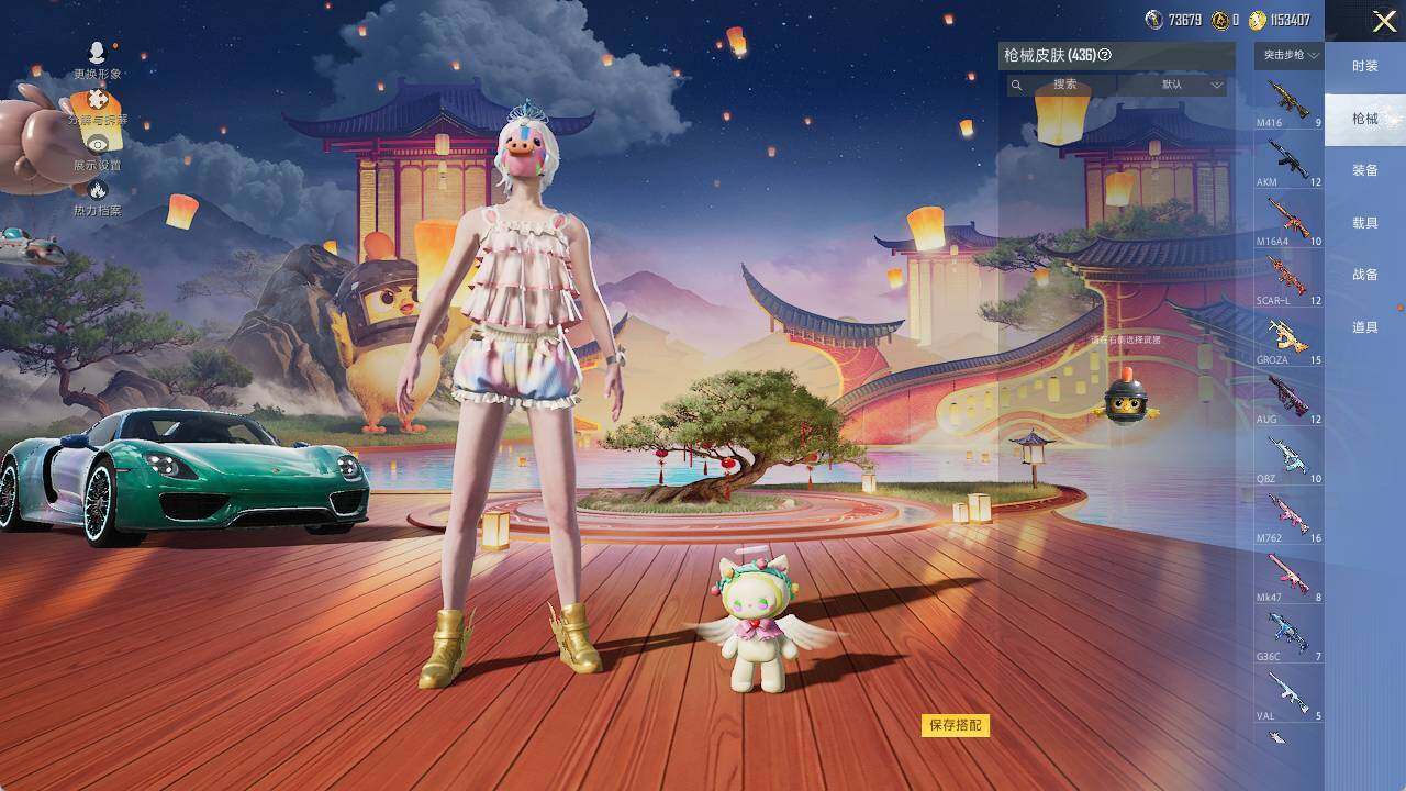 M416-五爪金龙,GROZA-精灵之光,M762-甜蜜誓约,UMP45-雪国精灵,Kar98K-巳巳如意,M249-蓝莓炮弹,平底锅-仲夏莫吉托