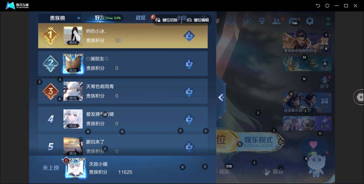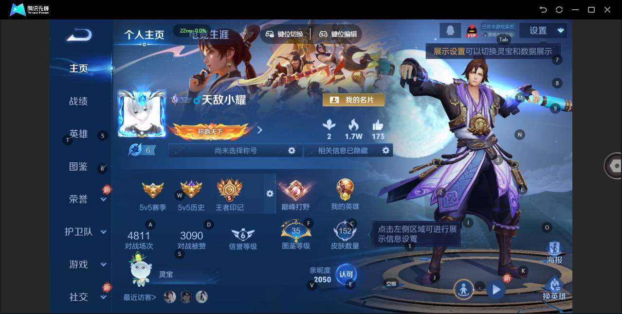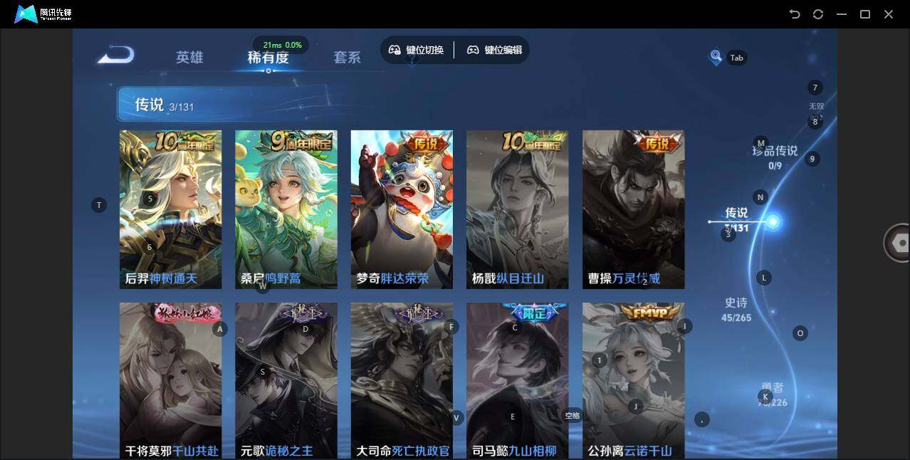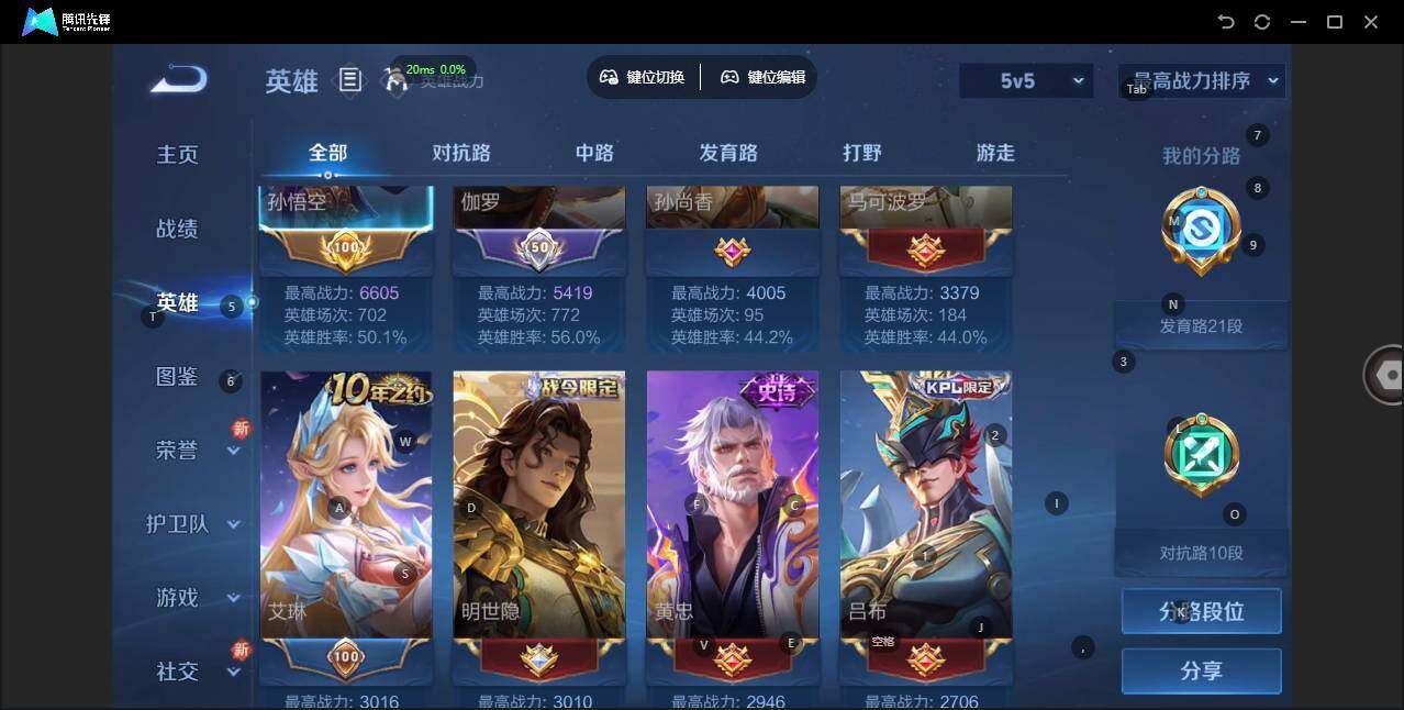 - PX_2059688-实名: 可修改 贵族等级: V5 英雄数: 108 皮肤数: 76 传说皮: 久胜战神 限定皮: 鸣野蒿,愿照·九州拓