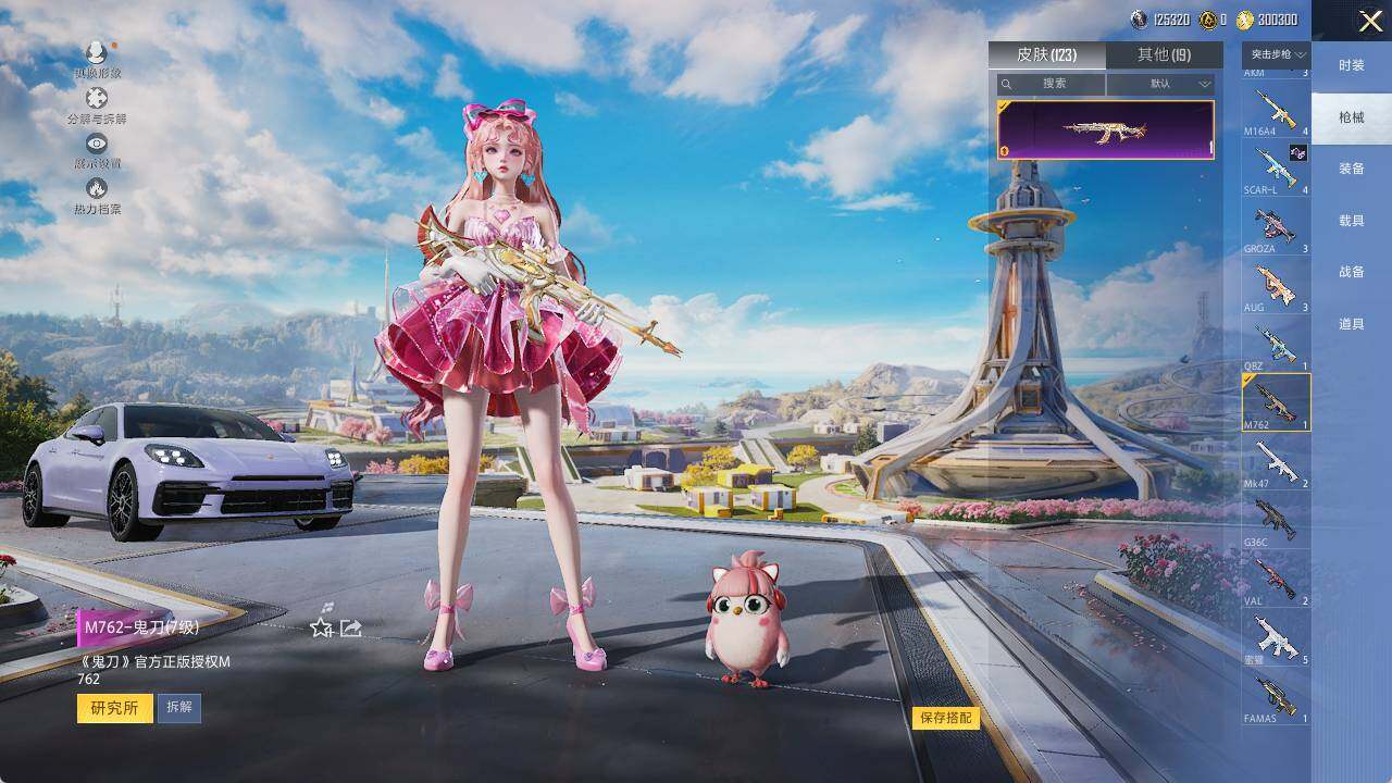 M16A4-垂柳戏鸭,GROZA-镜光银凌,AUG-暖羊咩咩,M762-鬼刀,Kar98K-巳巳如意