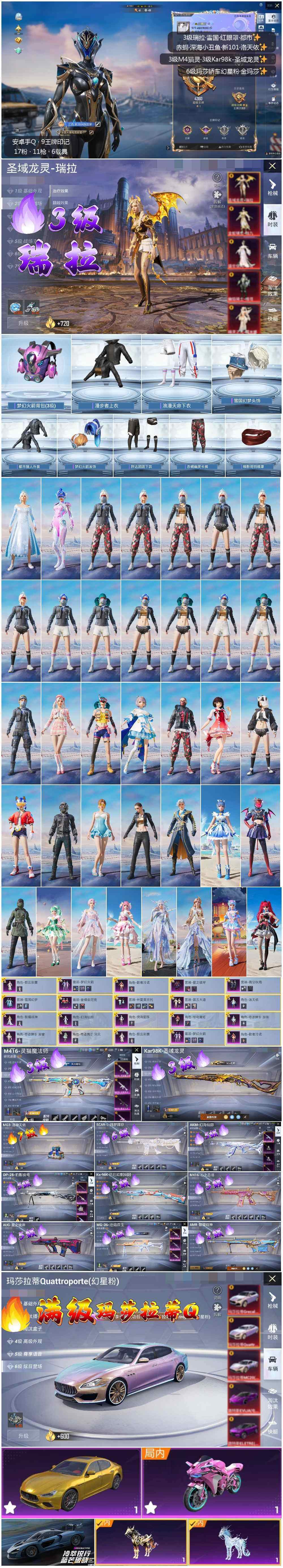 [13500061]【店主推荐捡漏号!可直接换绑】/素材身法号/玛莎拉蒂Quattroporte(幻星粉)(六级)/璀璨碎片1046 安卓 手Q-1神装-17粉装-11特效枪-6载具-9粉色飞行器-9.8w热力值-9王牌印记-169套装-222枪皮【红色载具】:玛莎拉蒂Quattroporte(幻星粉)(六级)【红色神装等级】:圣域龙灵-瑞拉(三级)【热门品类】:粉装-雪国幻梦,粉装-梦幻火箭,粉装-音爆索尼克,套装-浪漫天命,套装-赤蝎幽灵,套装-都市猎人,套装-深海小丑鱼,套装-胖达团团,套装-暗夜行者,套装-龟仙人,套装-暗影哥特【粉色载具】:玛莎拉蒂Quattroporte(幻星粉),玛莎拉蒂Ghibli(金),迈凯伦塞纳(冷萃蓝),双人摩托-梦幻火箭,黑曜夜骑,冰绡玉鳞【粉色套装】:粉装-雪国幻梦,粉装-梦幻火箭,粉装-星之彼岸,角色-洛天依,粉装-青空秋雨,角色-歌者泠鸢,粉装-音爆索尼克,粉装-第五大道,粉装-仲夏莫吉托,角色-烟云彩露,角色-智耀战神,角色-幻海仙踪,角色-荧海星豚,角色-绯穹魔姬,角色-奇迹舞步 贝贝,角色-奇迹舞步 美琪,角色-奇迹舞步 美雪【粉色枪皮等级】:AKM-幻海仙踪(五级),SCAR-L-纯梦嫁纱(六级),M416-心之恋语(五级),M416-灵猫魔法师(三级),AUG-星之彼岸(五级),Kar98K-巳巳如意(五级),Kar98K-圣域龙灵(三级),AMR-智耀战神(二级),DP-28-豹影疾电(五级),MG3-洛神天依(七级),MG-36-沧焰双生(四级)【粉色飞行器】:梦幻火箭飞行器,星之彼岸飞行器,相思残雪飞行器,歌者泠鸢飞行器,圣域金龙飞行器,终晖之翼飞行器,灵猫魔法师飞行器,灵珠游龙飞行器
