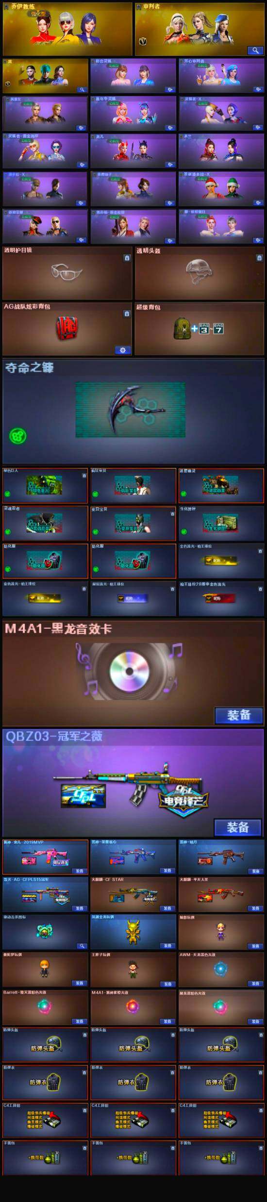 【道具】:AG战队炫彩背包,女皇终结者-背包,炫彩背包,百战金芒炫彩背包,背包-洛丽塔,超级背包,女皇终结者-魔龙之吻,绿色巨人,灵魂忍者,变异宝贝,迷雾幽灵,生化弹匣,夺命之镰,防化服*2,金色流光-枪王排位*2,星辰流光-枪王排位,枪王排位28赛季金色流光,枪王排位29赛季金色流光,语音特效-盛典烟火,萌萌小葵表情,C4-红龙,防弹头盔*3,防弹衣*3,C4工具钳*3,手雷包*3