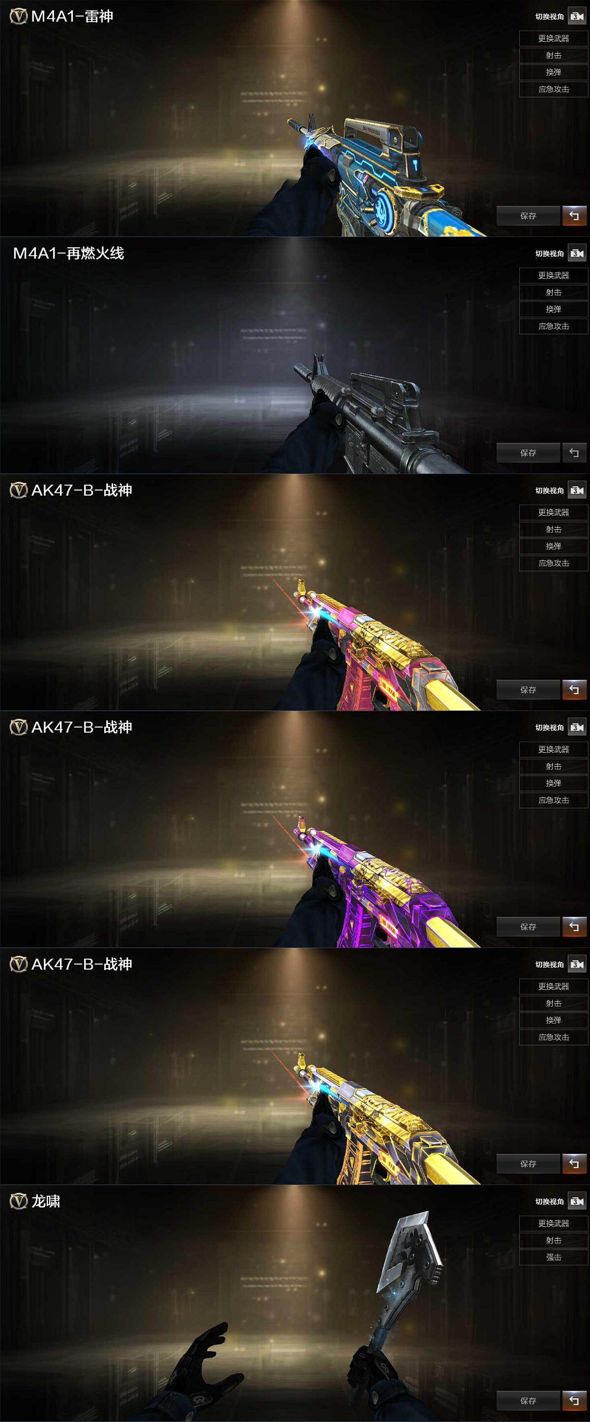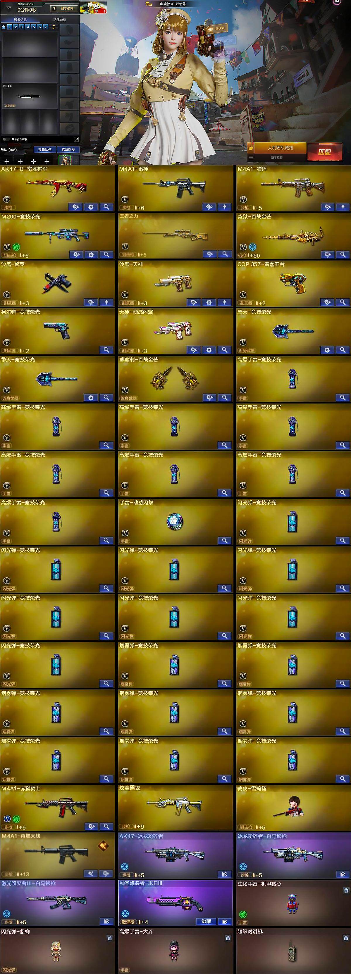 【皮肤】:M4A1-战神赵云,M4A1-再燃火线,战神-粉色甜心皮肤,战神-紫绶金章皮肤,战神-流金岁月皮肤,AK47-B-常胜将军-刘备,AK47-B-常胜将军-孙权*3,轻型军用手斧-再燃火线