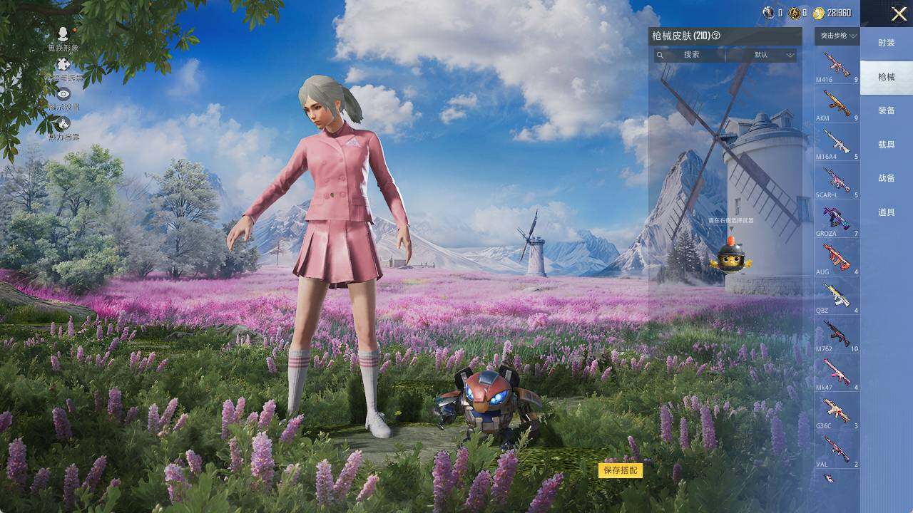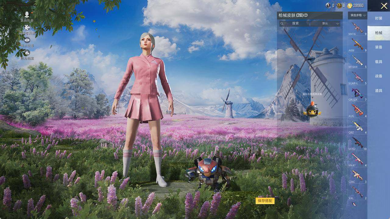 AKM-甜心宝贝,SCAR-L-童趣迷兔,M416-心之恋语,Kar98K-巳巳如意,破片手榴弹-热量炸弹