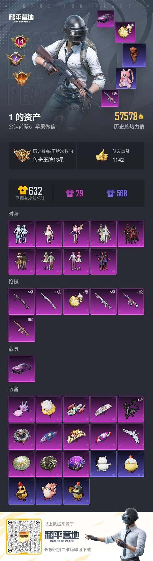 - PX_2097321- 苹果手Q-13王牌印记-有战神框-9粉装-7特效枪-1载具-70507热力值-165套装-198枪皮-0卓越印记-0传奇印记 【9粉装】,梦幻火箭,天使彩虹糖,新星烈龙,绯穹魔姬,羊梦糖心,暗星紫秘,彩虹鹿灵,歌者泠鸢,未来歌姬 【7特效枪】SCAR-L-青春物语-7级 M416-五爪金龙-7级 M416-风花雪月-5级 GROZA-镜光银凌-5级 AUG-暖羊咩咩-5级