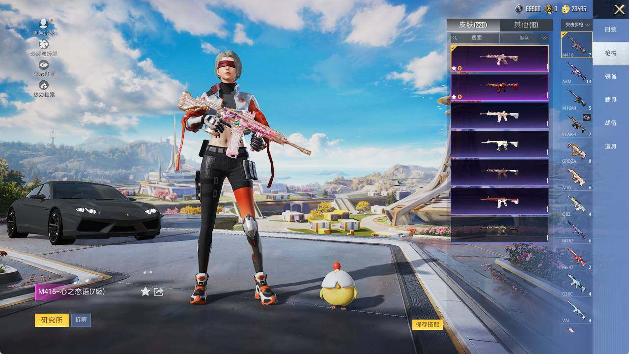 AKM-星际浪客,M416-心之恋语,M416-风花雪月,GROZA-焦糖拿铁,AUG-暖羊咩咩,Kar98K-巳巳如意