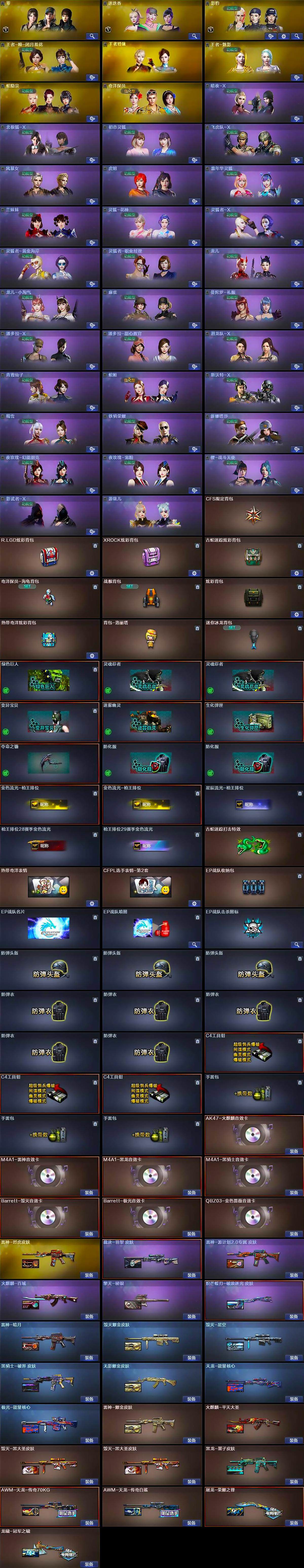 【音效卡】:AK47-火麒麟音效卡,M4A1-雷神音效卡,M4A1-黑龙音效卡,M4A1-黑骑士音效卡,Barrett-毁灭音效卡,Barrett-极光音效卡,QBZ03-金色蔷薇音效卡