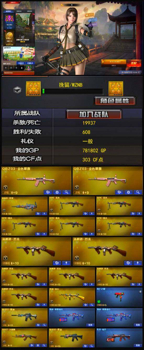 【热门武器】:QBZ03-金色蔷薇*2,死亡之眼,汤姆逊-烈龙*6,RPK-盘龙*5,加特林-炼狱,沙鹰-修罗