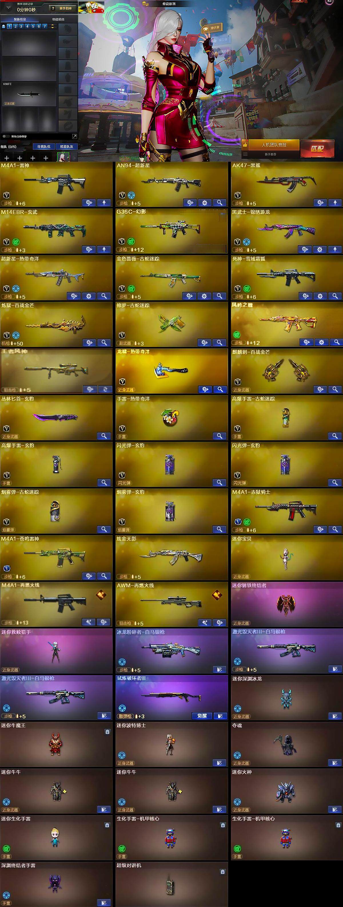 - [11876843]可二次 可修改实名 V2 2王者武器 115英雄武器 4英雄角色 179万化 枪皇SSS 武器:王者之影,M200-幻神,CZ75-策,81式-光明之神,TAC-慈,KSG-孟获,M4A1-雷神,AK47-无影,AK47-火麒麟,巴雷特-极光,巴雷特-毁灭,M4A1-堕天神,QBZ03-死神,QBZ03-金色蔷薇,QBZ19-天使,98K-黑骑士,QBB95-极光,双持斯泰尔-天使,AK47-血武士,M4A1-猎神,M4A1-夏清觉醒,M4A1-千变,M4A1-海骑士,AK12-天启,AWM-天龙,98K-星神,09式狙-天神,SCAR-幽暗骑士,CBJ-MS-毒蜂,汤姆逊-烈龙,CZS2-心动次元,CZS2-血月,加特林-堡垒,QBZ03-玉面羞花,M14EBR-拂影,AK47-破空冰刃,MK47-鼓龙,AA12-火药,地狱火,打击者-天神,HK416-极光,AN94-赳赳秦师,M4A1-太白诗仙,方天画戟,毛瑟-毒蜂,沙鹰-神兵修罗,气手枪-血月,M16-恶魔,QBB95-再战涿鹿,手斧-机械迷城,尼泊尔-冰锋觉醒,M4A1-铁胆虎魄,擎天,马来剑-毁灭,MK47-塔罗牌觉醒,丛林匕首-火力竞放觉醒,神罚战斧,丛林匕首-庆龙觉醒,屠龙,星芒,太白诗仙扇,电锯-毒蜂,蝴蝶刀-天神,女皇利刃-铁胆虎魄,烟雾弹-天使,高爆手雷-雷暴,闪光弹-雷暴,黑骑士手雷,黑骑士闪光弹,燃烧弹-游骑兵,烟雾弹-游骑兵,闪光弹-游骑兵,闪光弹-惊涛骇浪,死神闪光弹,高爆手雷-无限,高爆手雷-神工天巧,手雷-鼓龙,甩棍-卧龙觉醒,GLOCK18-猎神,龙爪手-鼓龙,双持沙鹰-元让,左轮-卧龙觉醒,AN94-盖,SCAR-心动PICK,AWM-指南针,QBZ97-浩瀚征途,AWM-指南针觉醒,王者之霆,CZS2-仲康,马来剑-耀金伯爵,破邪蛇棍觉醒,烟雾弹-星际宇航,G3A3-衍神兵,末日裁决觉醒,M1887-幽冥玄喵觉醒,MAC-10-孟获,QSZ92-冰魂觉醒,烈焰刀,手雷-游骑兵,AWM-大湾溢彩,环刃-炫光掠影觉醒