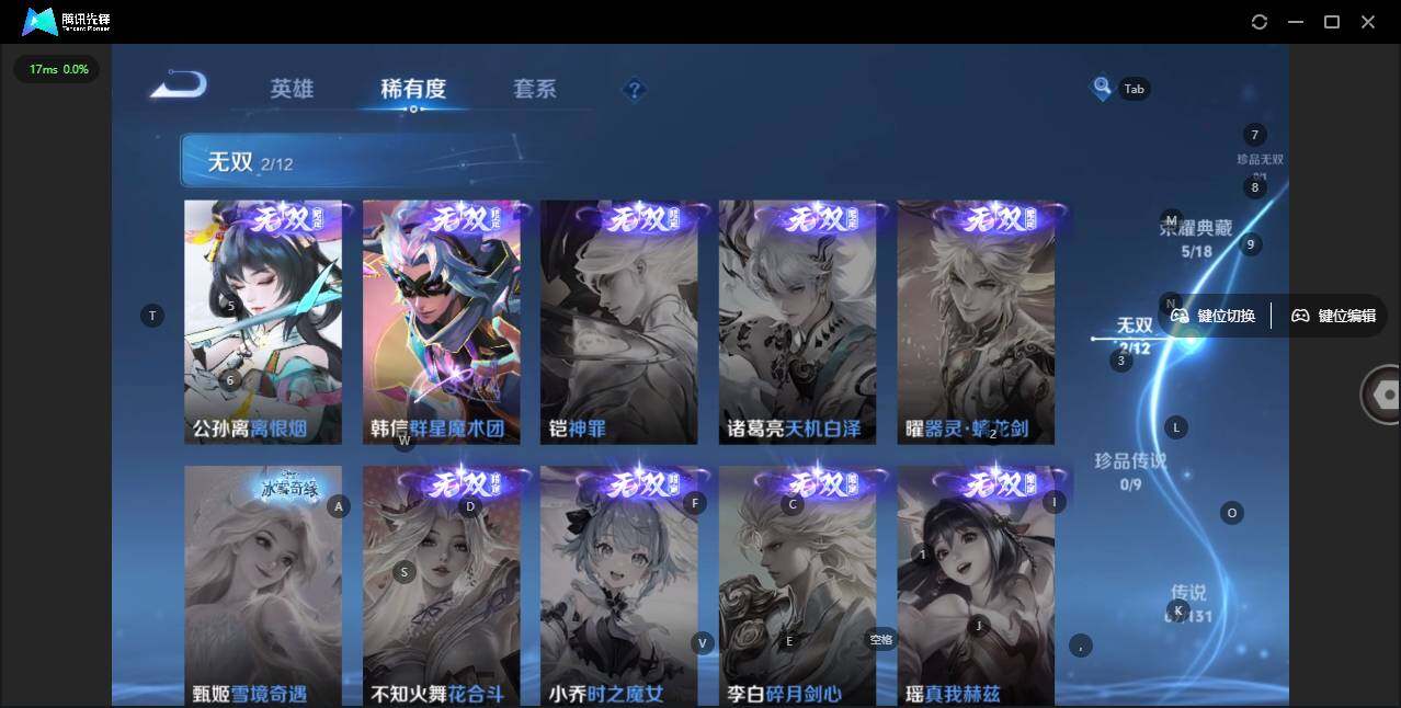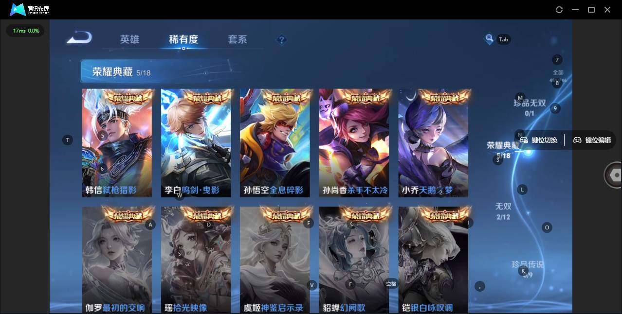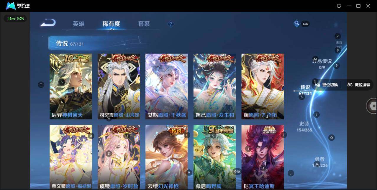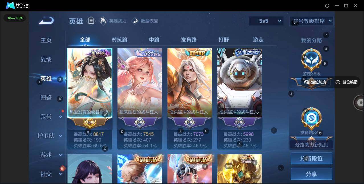 - [11603418]V5 4传说 120英雄 153皮肤 可修改实名 优质装备:无双飞将 传说皮:幻光神枪 珍宝阁皮:胡桃夹子 限定皮:愿照·山河定(司空震年限),逐霄战戟,鸣野蒿,傲雪梅枪,五谷丰年,李小龙,山海·玄木吟(马可年限) 史诗皮:器灵·浮梦炉,化蝶舞,星界战将,茶境仙,谪仙醉月,紫霞仙子,黄金分割率,江河有灵,百解令(蒙犽),节奏热浪,摇滚巨星,水果甜心,绅士熊喵,心灵骇客,暗隐猎兽者,鬼剑武藏,乐园奇幻夜,拒霜思,乘风破浪,水晶猎龙者,曙光守护者,金属风暴,鹰眼统帅,魅力维加斯,赏金猎手,未来纪元-赵云