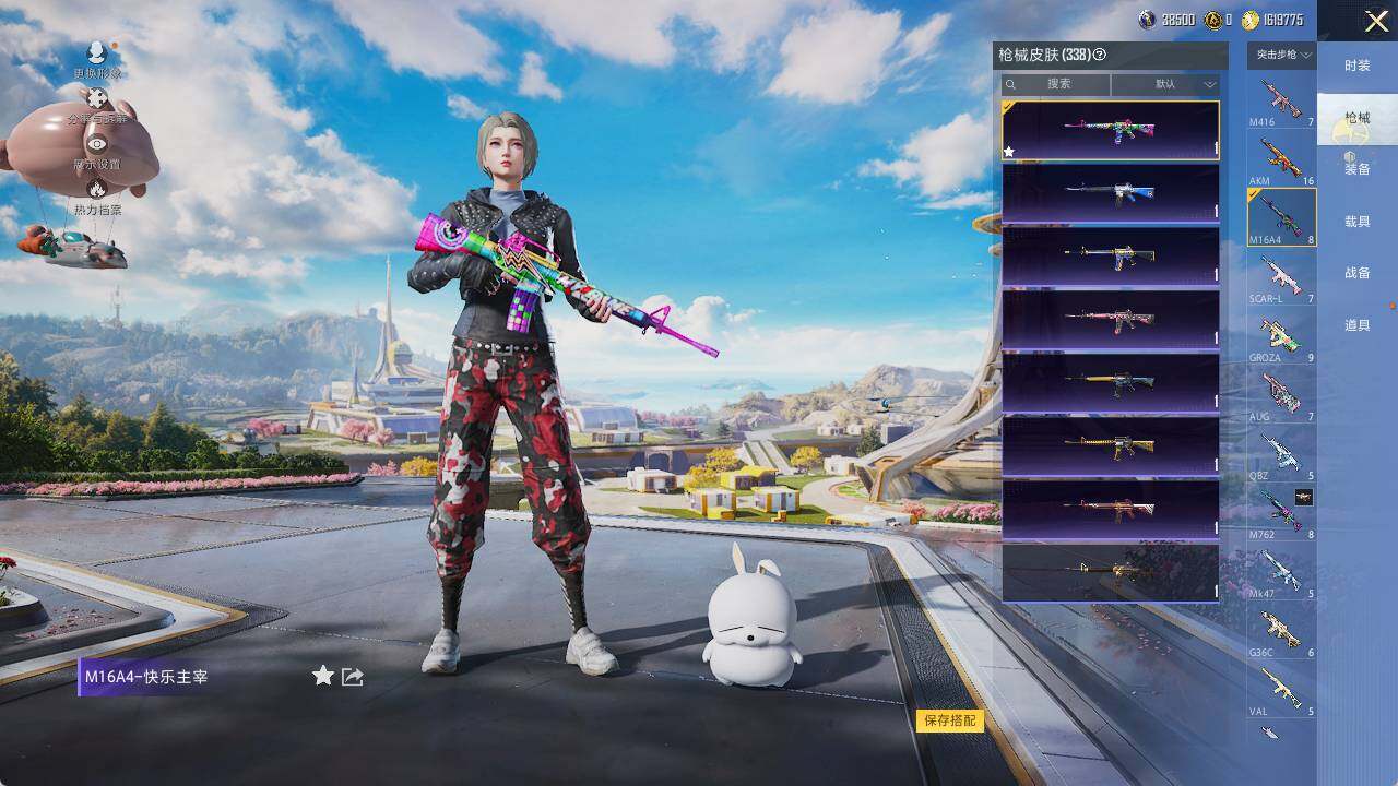AKM-梦之光华,AKM-盖世英雄,M416-心之恋语,GROZA-玉面桃花,AUG-超新星,P90-仙履奇缘,Kar98K-巳巳如意,MG3-洛神天依,平底锅-仲夏莫吉托