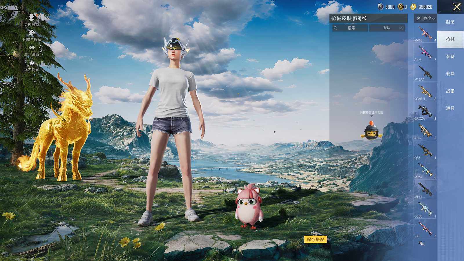 AKM-炫紫旋律,SCAR-L-金蛇镇世,M416-心之恋语,AUG-暖羊咩咩,Kar98K-巳巳如意