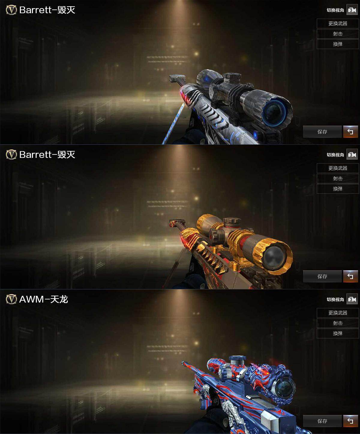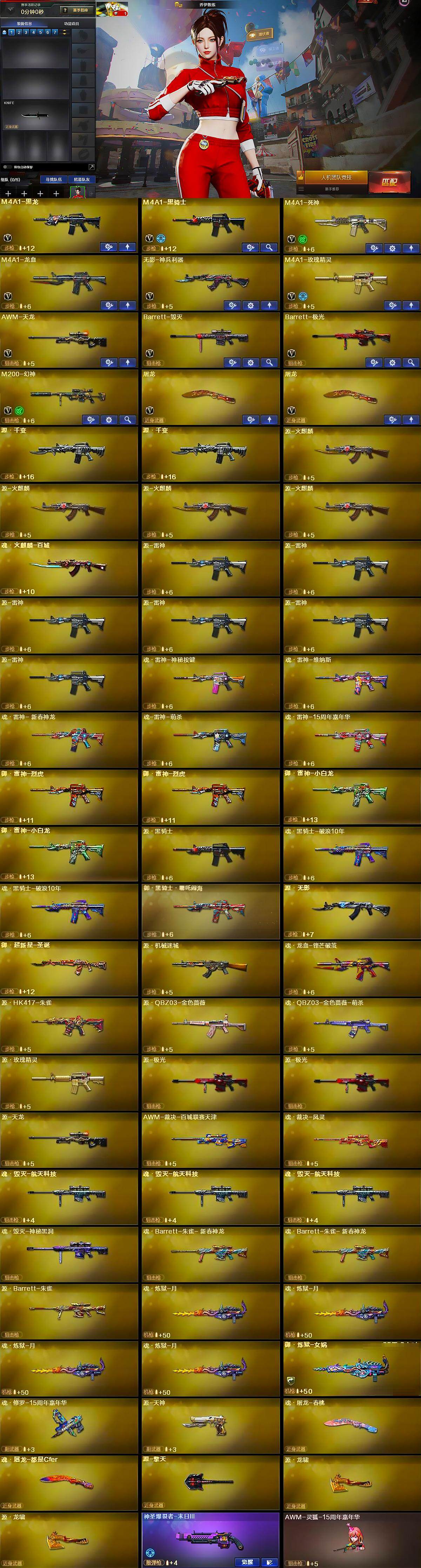 【英雄级武器】:M4A1-黑龙,M4A1-黑骑士,M4A1-死神,M4A1-龙血,无影-神兵利器,M4A1-玫瑰精灵,AWM-天龙,Barrett-毁灭,Barrett-极光,M200-幻神,屠龙*2